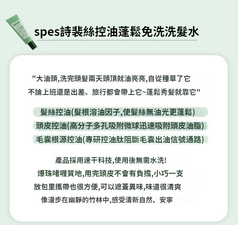 Spes詩裴絲免洗洗髪水控油蓬松保濕清爽蓬蓬凝露清爽啫喱