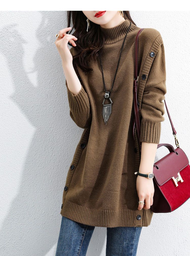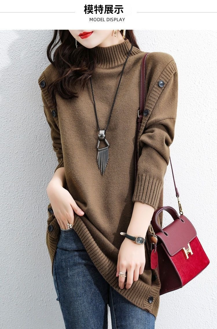 第 2 件 : 秋季新款大尺碼春秋款套頭針織打底衫洋裝時尚寬鬆加厚毛衣