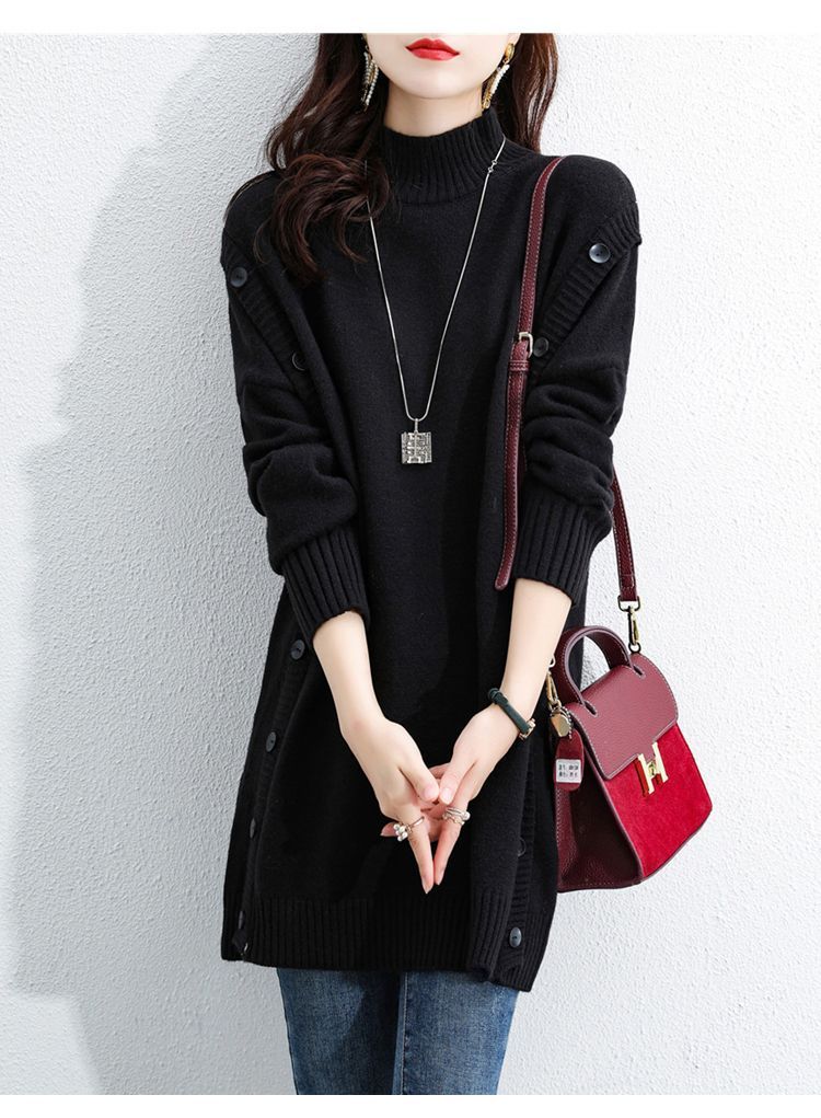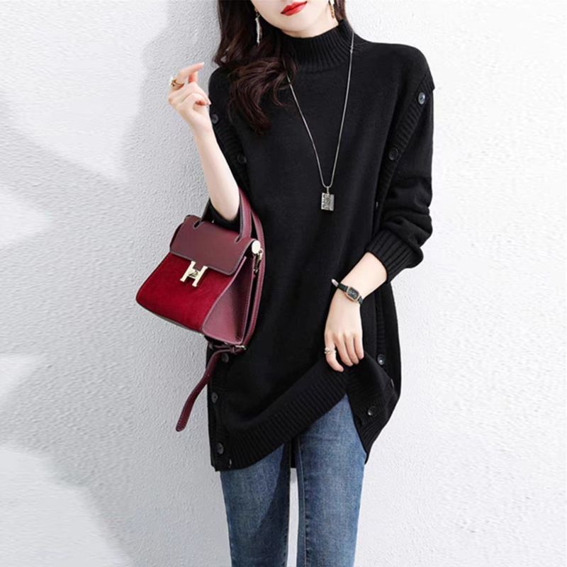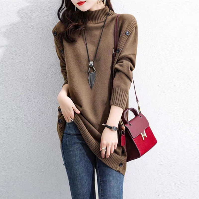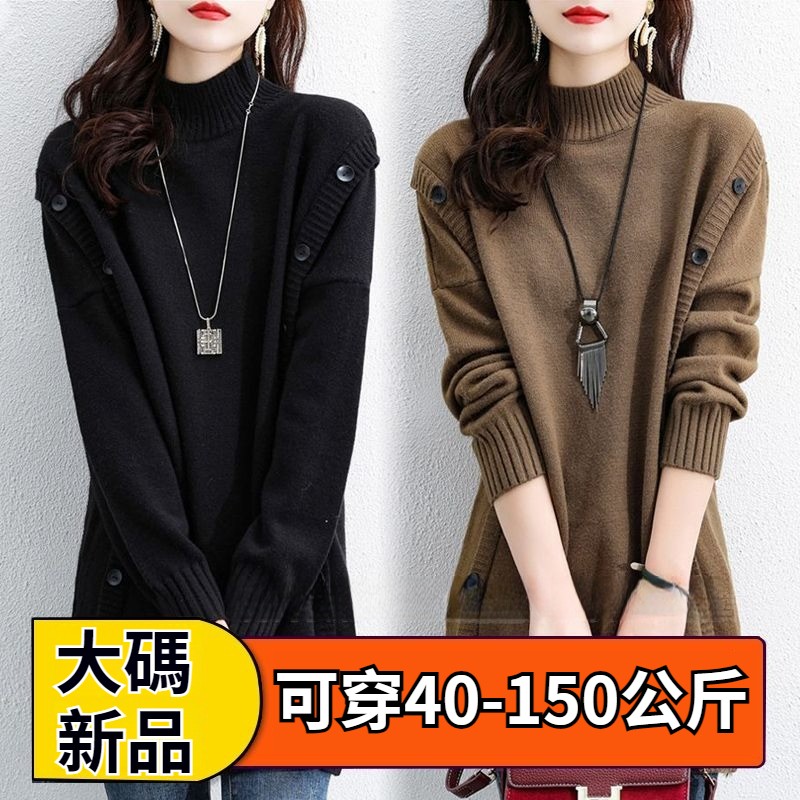第 1 件 : 秋季新款大尺碼春秋款套頭針織打底衫洋裝時尚寬鬆加厚毛衣