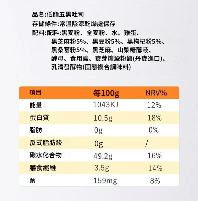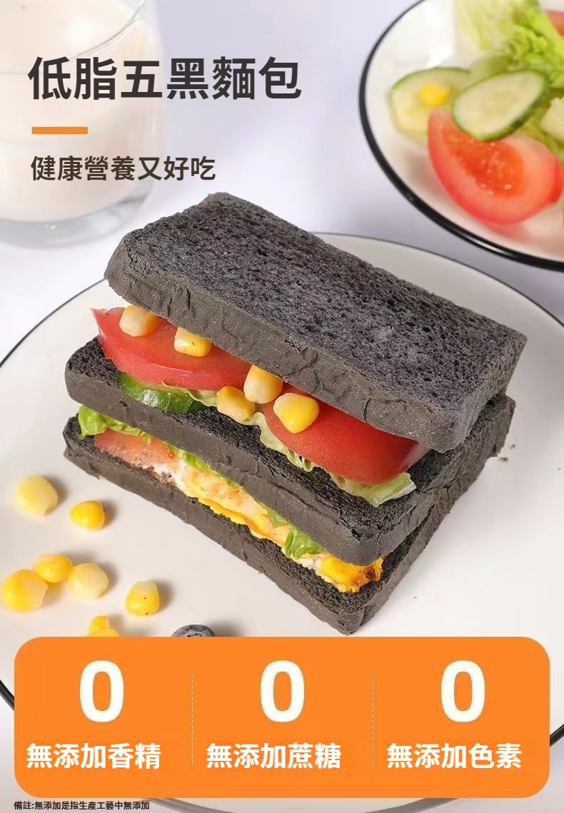 【新鮮日期】五黑健身營養吐司凈重:2kg*1箱:1180