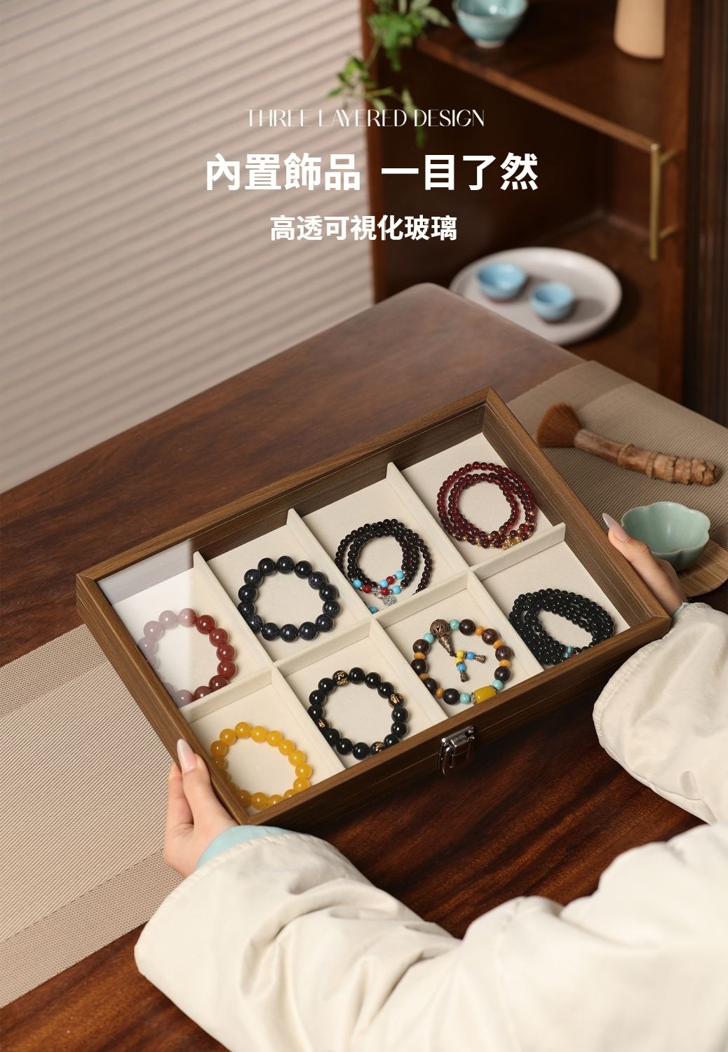 第 1 件 : 手串收納盒展示收納復古文玩手鐲項鍊手鍊防塵耳環飾品首飾盒