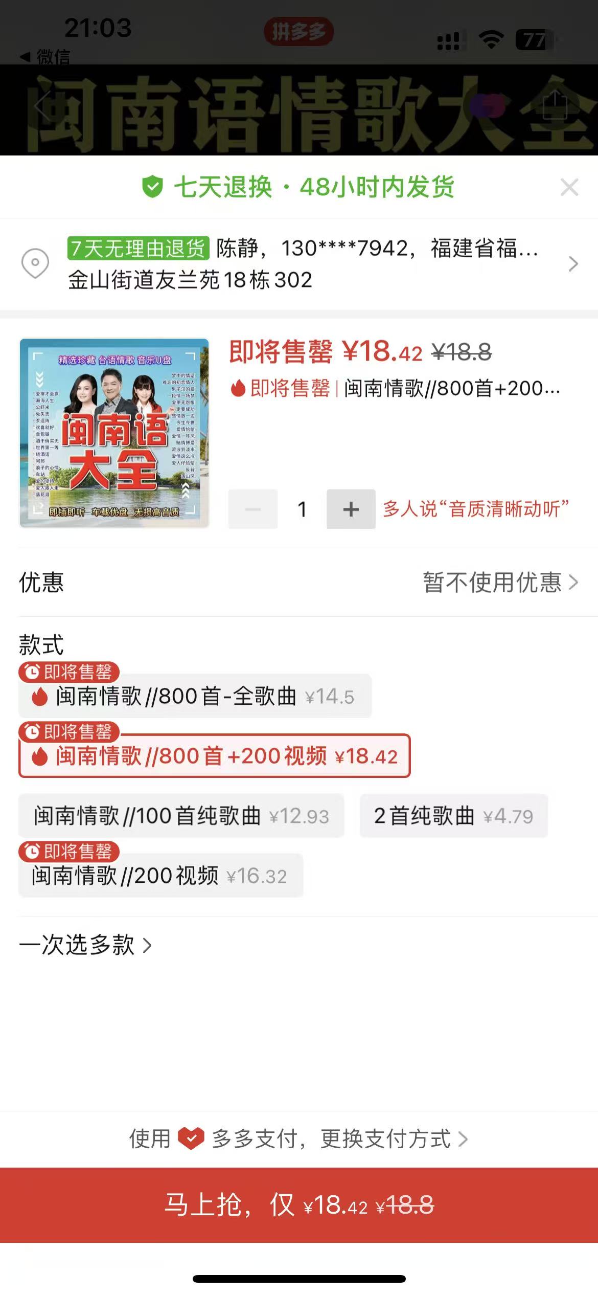 ③經典閩南語歌曲U盤1個 18.42 https://mobile.yangkeduo.com/goods.html?goods_id=683288984190&_oak_rcto=YWIdWa5tsUxddynFWGFP7DBh-xKxp9OOTB91eITYqF-srLV4buXx9G2f&page_from=23&refer_page_name=likes&refer_page_id=10034_1764059833735_rzz41400bc&refer_page_sn=10034&uin=DNI7TGLJ2FTDPLYFXEZ2RMKMOE_GEXDA