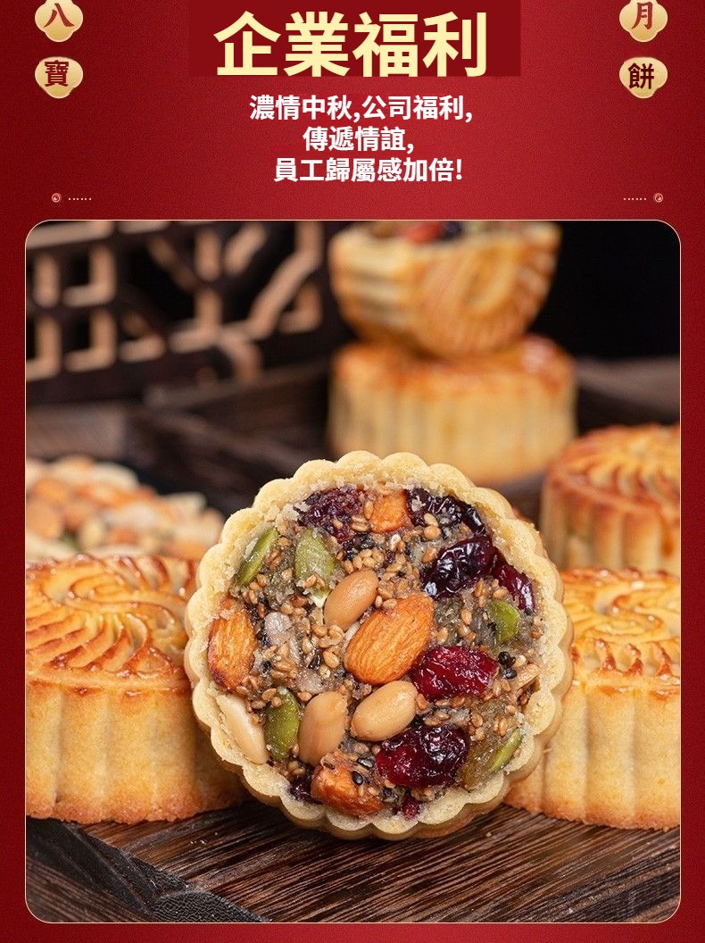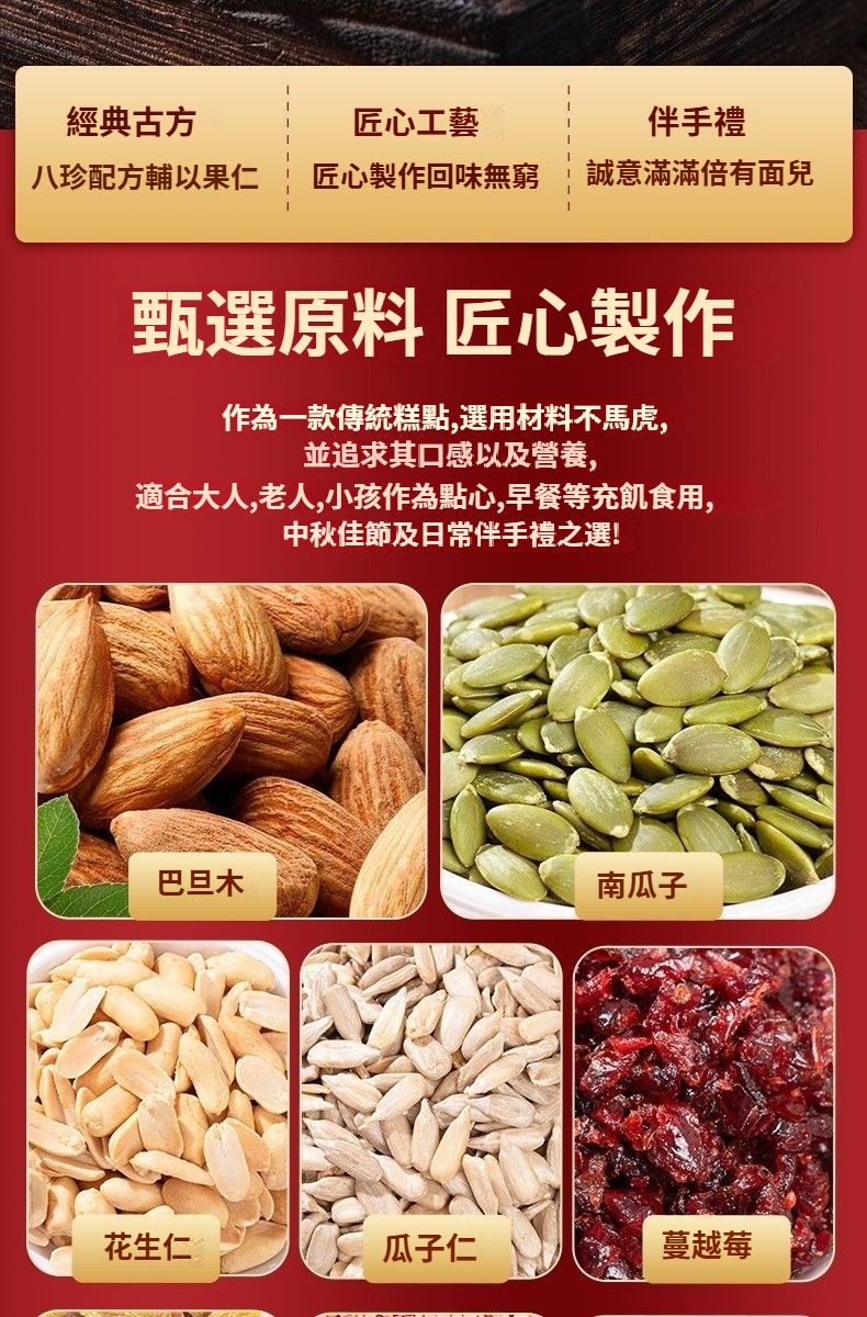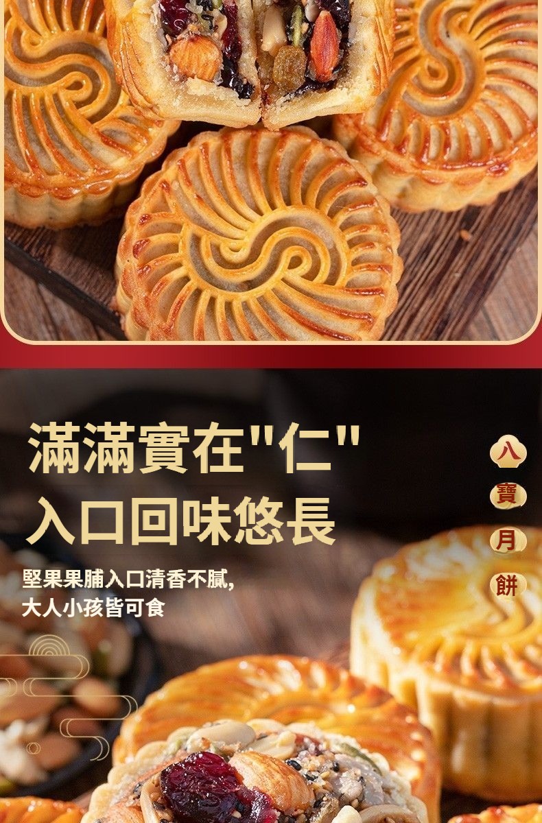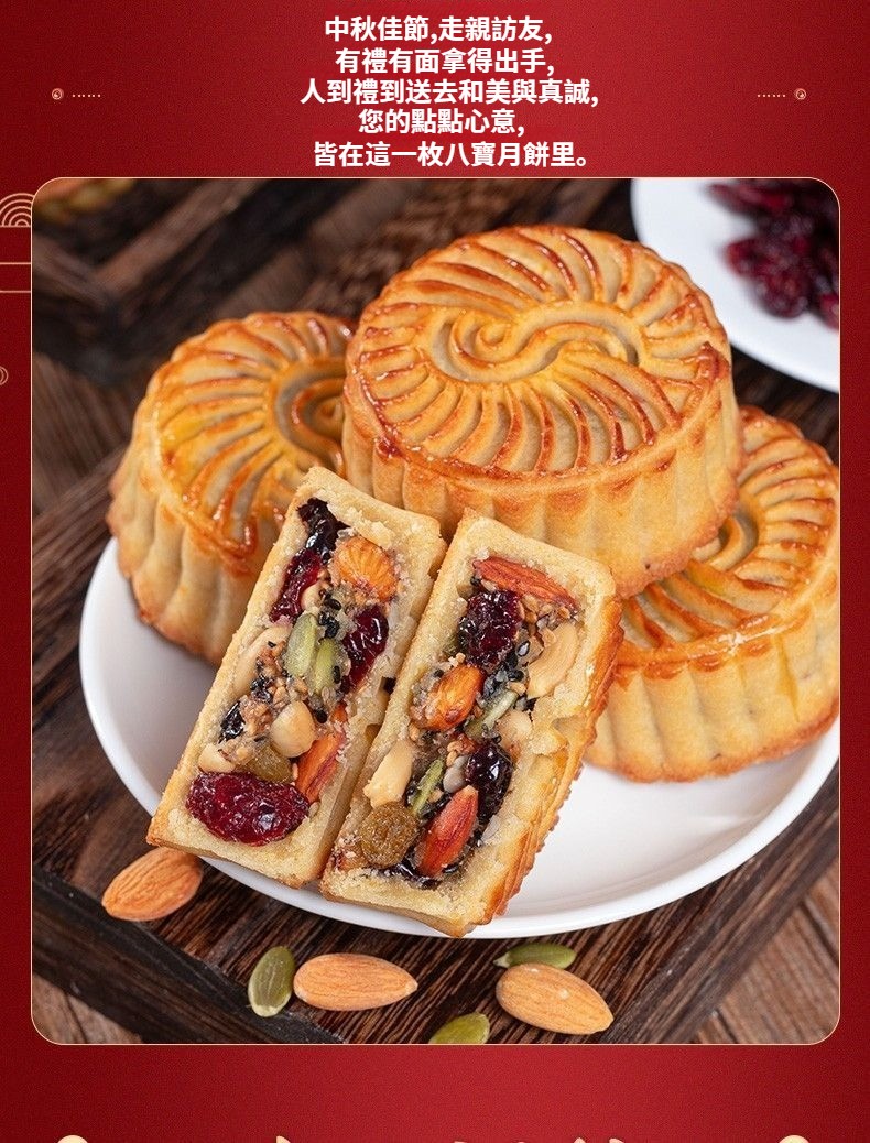 【無蔗糖八寶月餅·健康好吃】真材實料:巴旦木、蔓越莓、葡萄乾、南瓜籽等8種堅果果乾,滿口香濃!零添加更安心:無蔗糖、無防腐劑,配料乾淨,高蛋白高營養,老少皆宜~健康月餅#中秋禮盒#無蔗糖八寶月餅日期新鮮,中秋送禮自用兩相宜!
