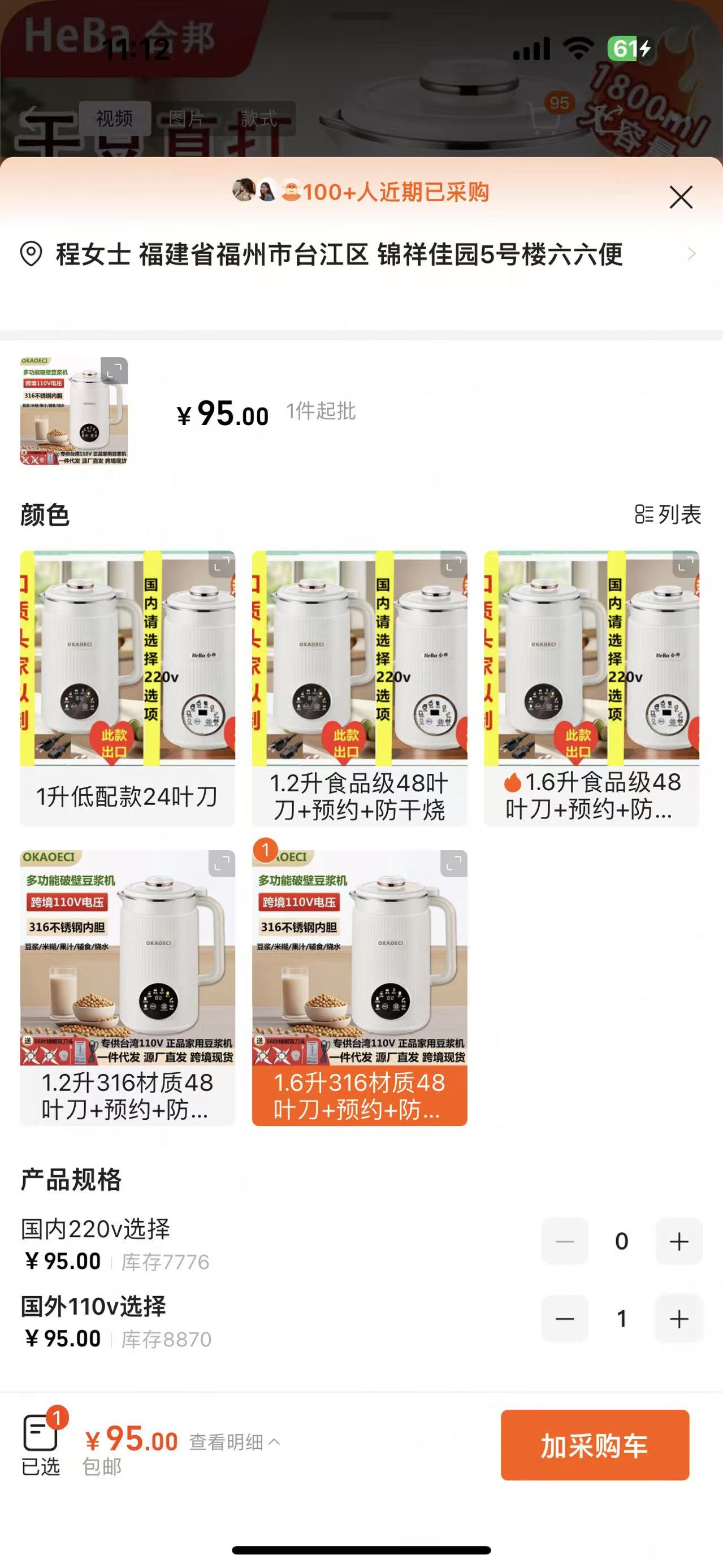 【跨境110V美规316不锈钢破壁豆浆机台湾美国日本加拿大干豆辅食】复制¥8YtNYGS30YCap¥,打开【手机阿里】或【支付宝-点首页进行搜索】查看:https://qr.1688.com/s/gfC4mAkR CZ2295