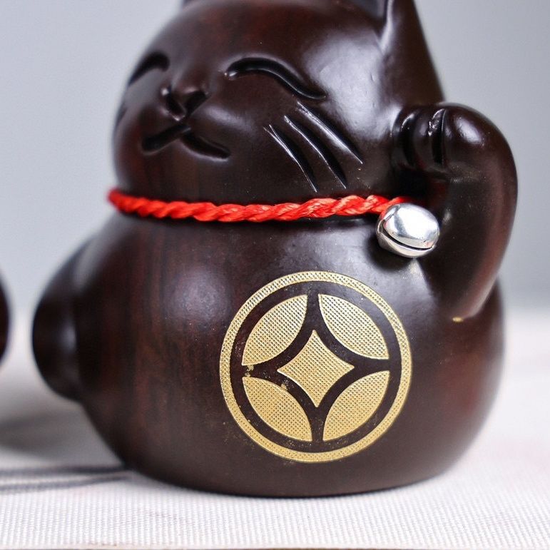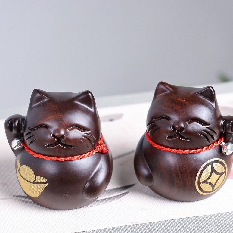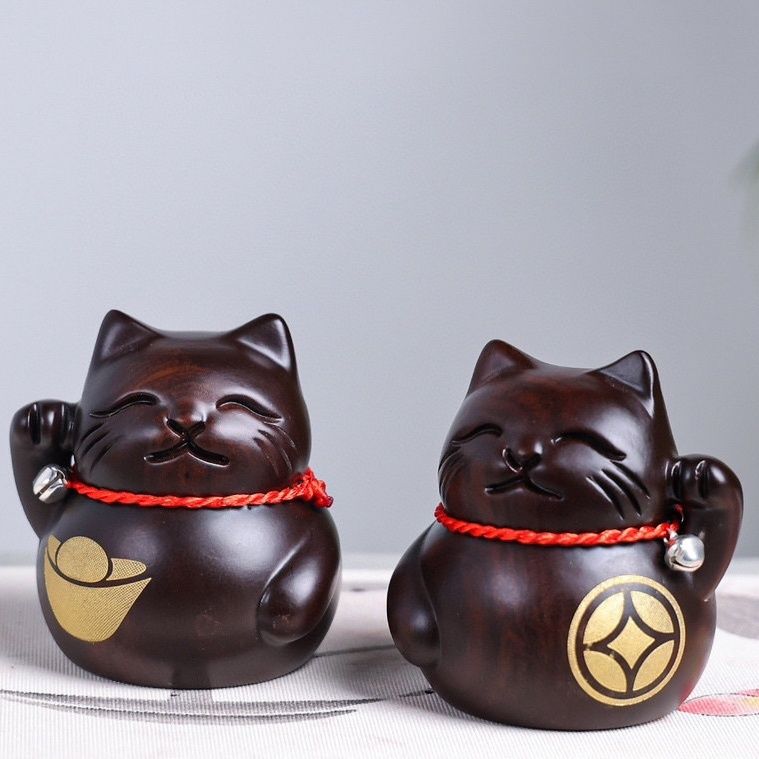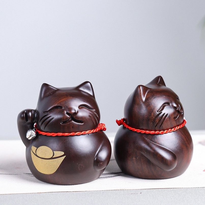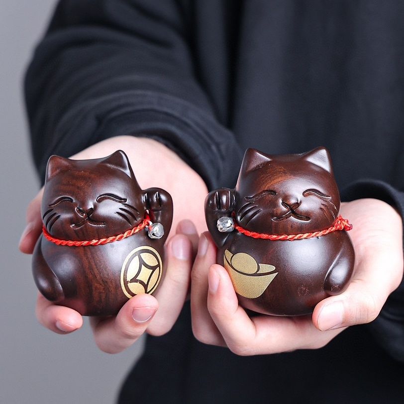 黑檀實木手工雕刻打磨上漆招財貓桌面擺件開業生日喬遷送禮佳品