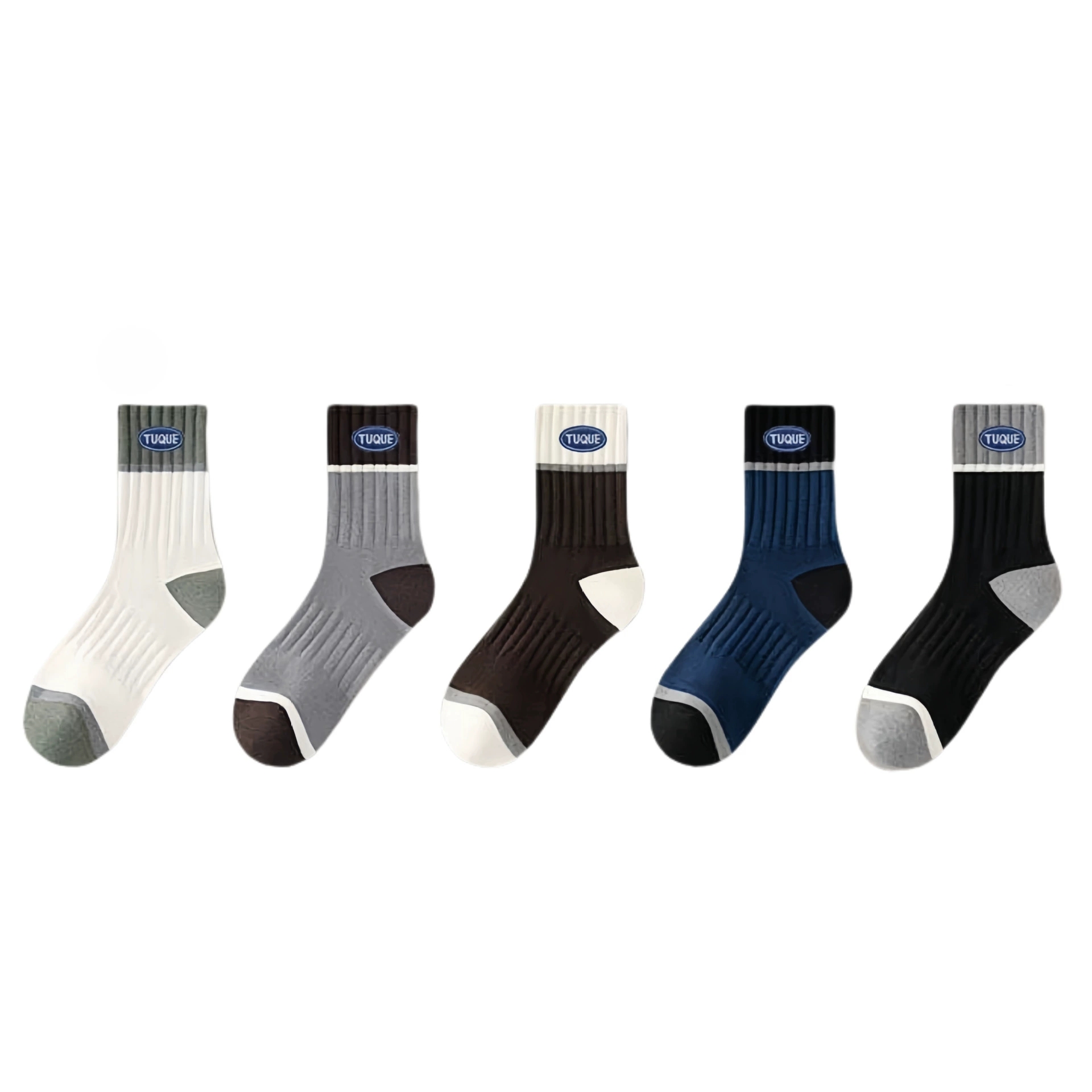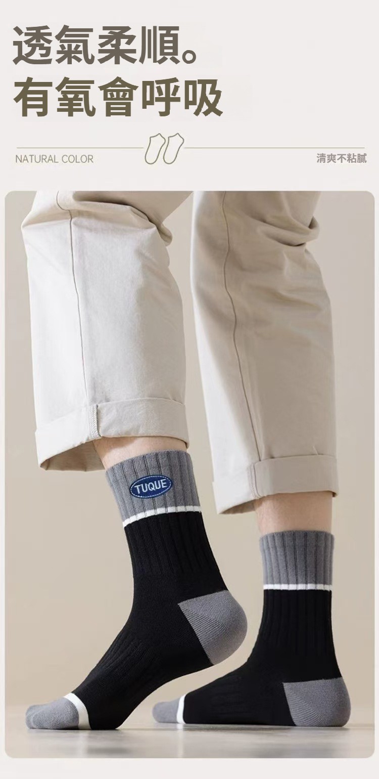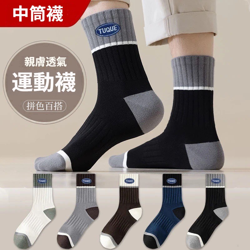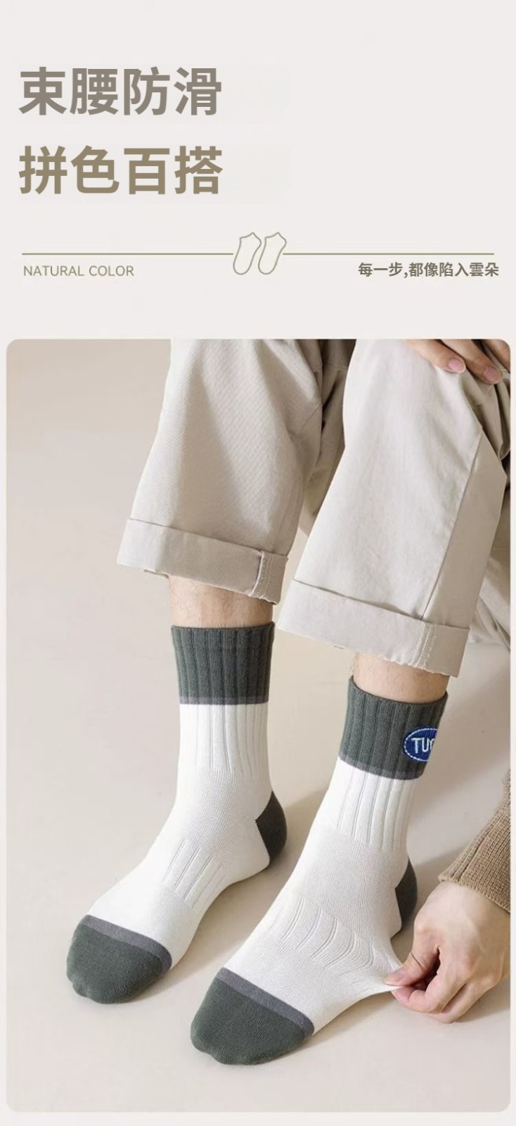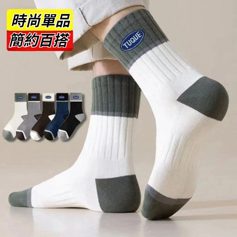 男士襪子春秋新款吸汗防臭高橡實拼色男士商務中筒襪