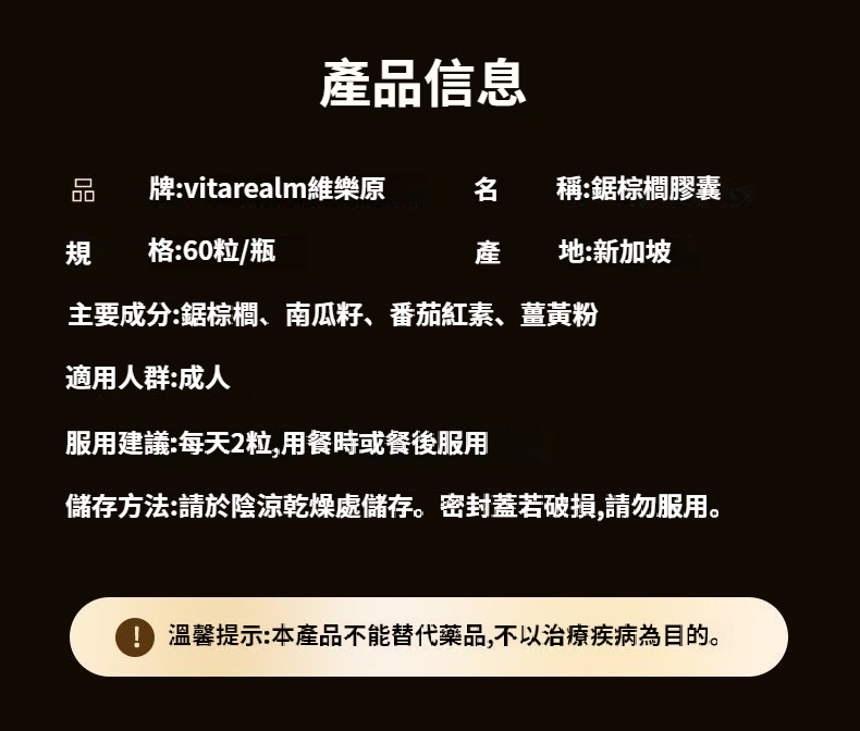 【新加坡鋸棕櫚攝護腺膠囊】維樂原鋸棕櫚前列番茄紅素薑黃尿P尿J鈣化男久坐中老年 NT$ 1899