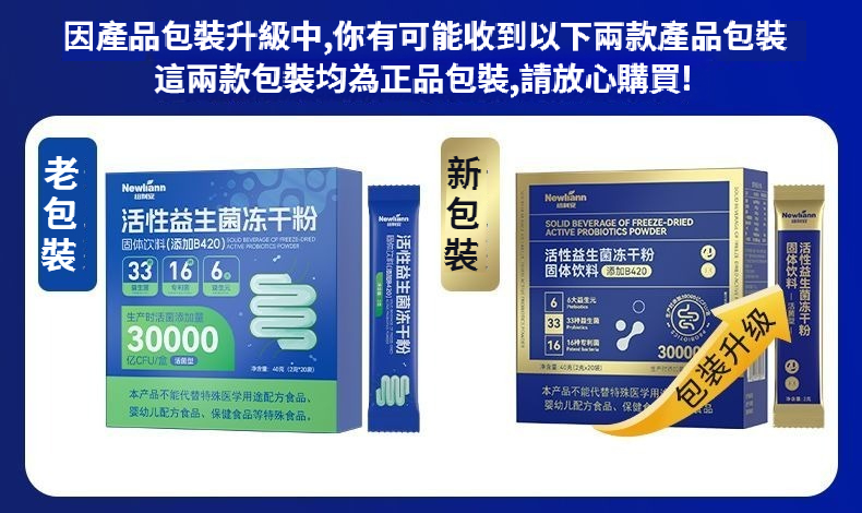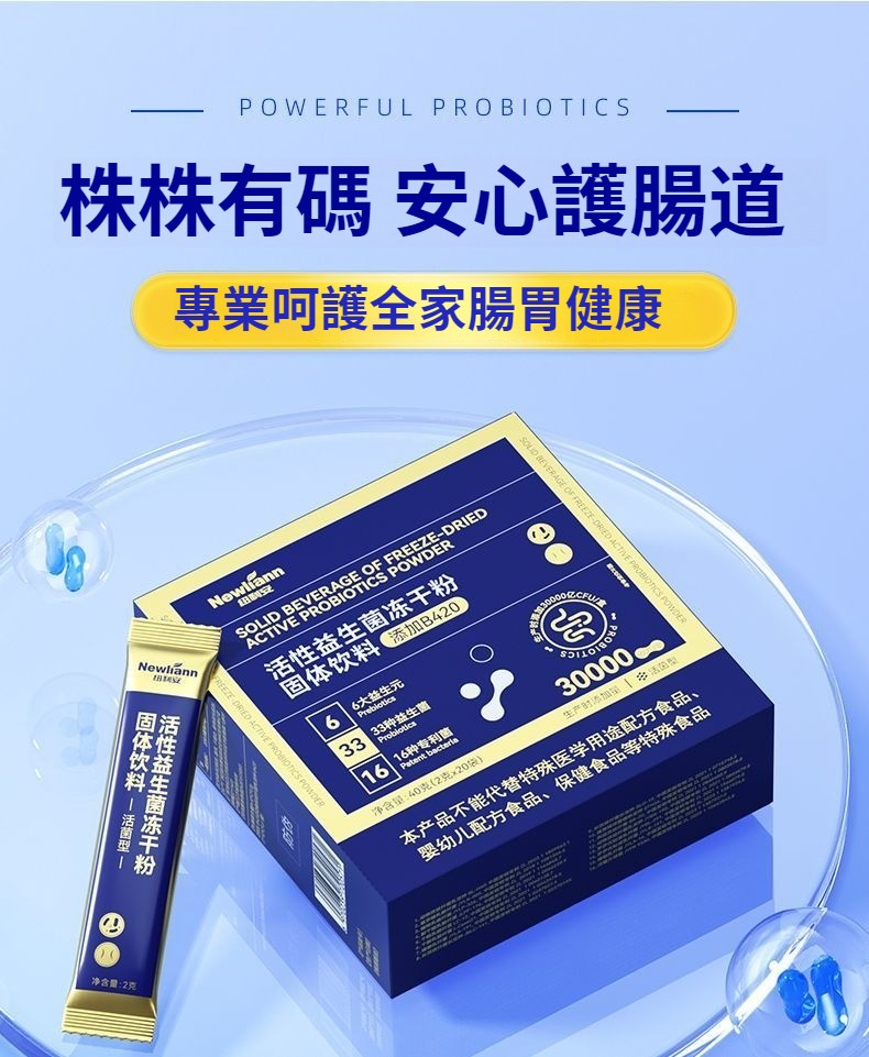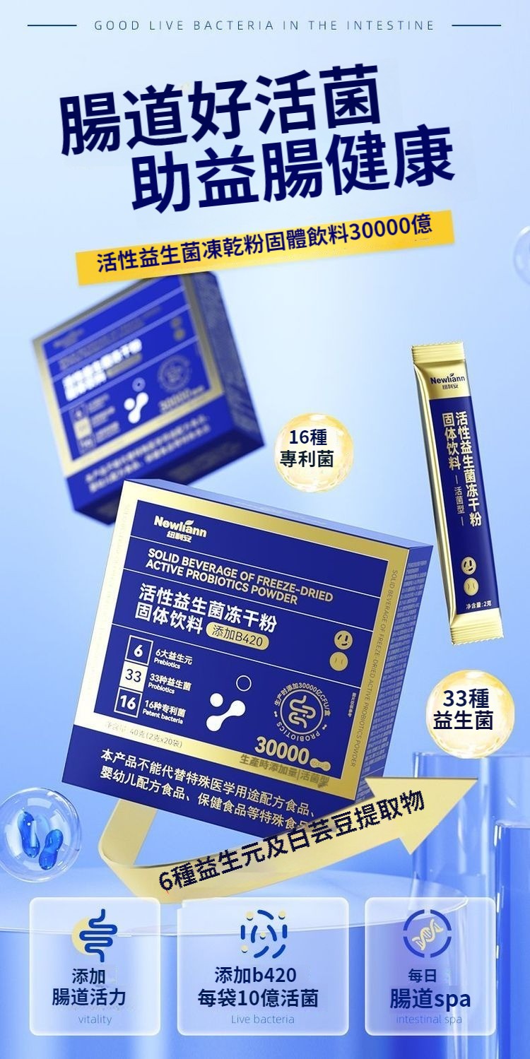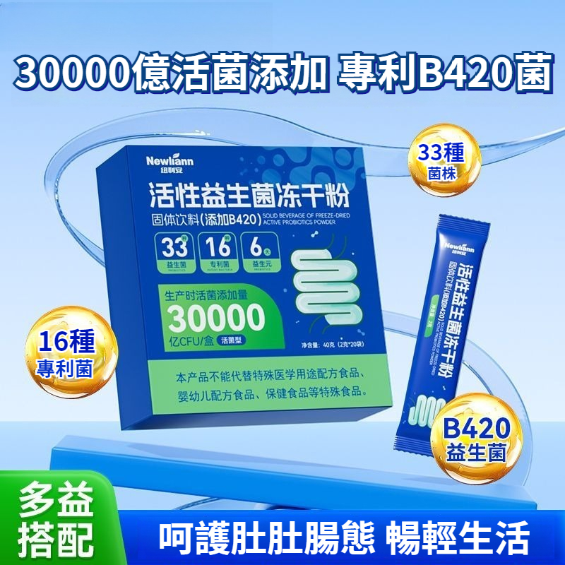 紐利安活性益生菌凍幹粉成人30000億益生菌粉呵護腸胃腸道