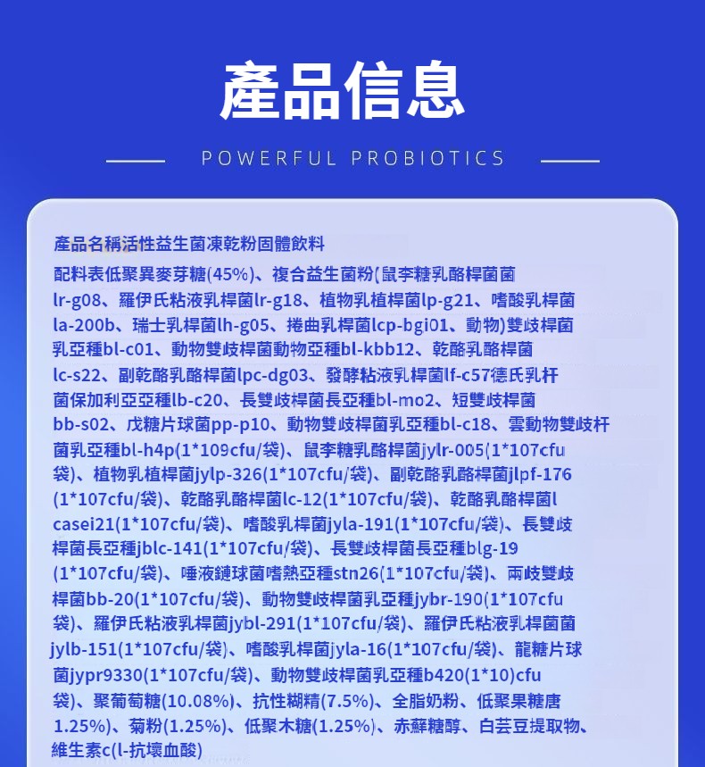 紐利安活性益生菌凍幹粉成人30000億益生菌粉呵護腸胃腸道 NT$ 950
