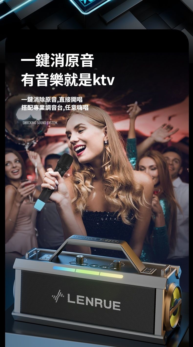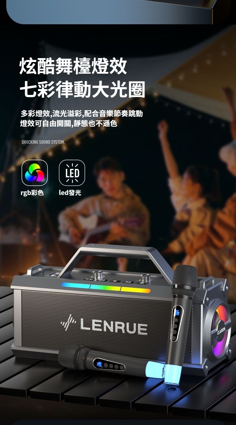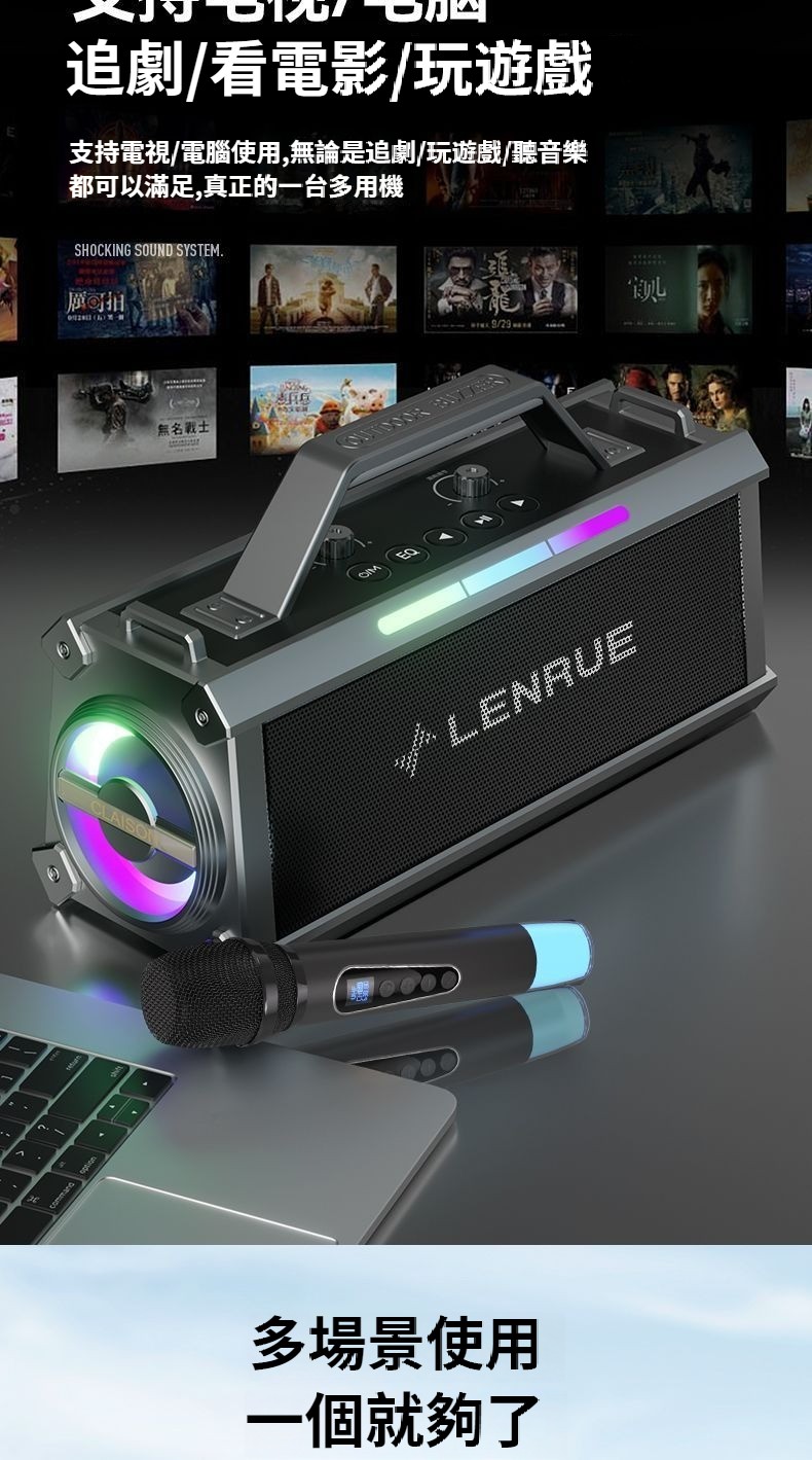 戲院級藍牙K歌音響,雙麥智慧美聲一鍵消原音七彩燈效可插卡長續航 直播/K歌帶麥藍牙音箱