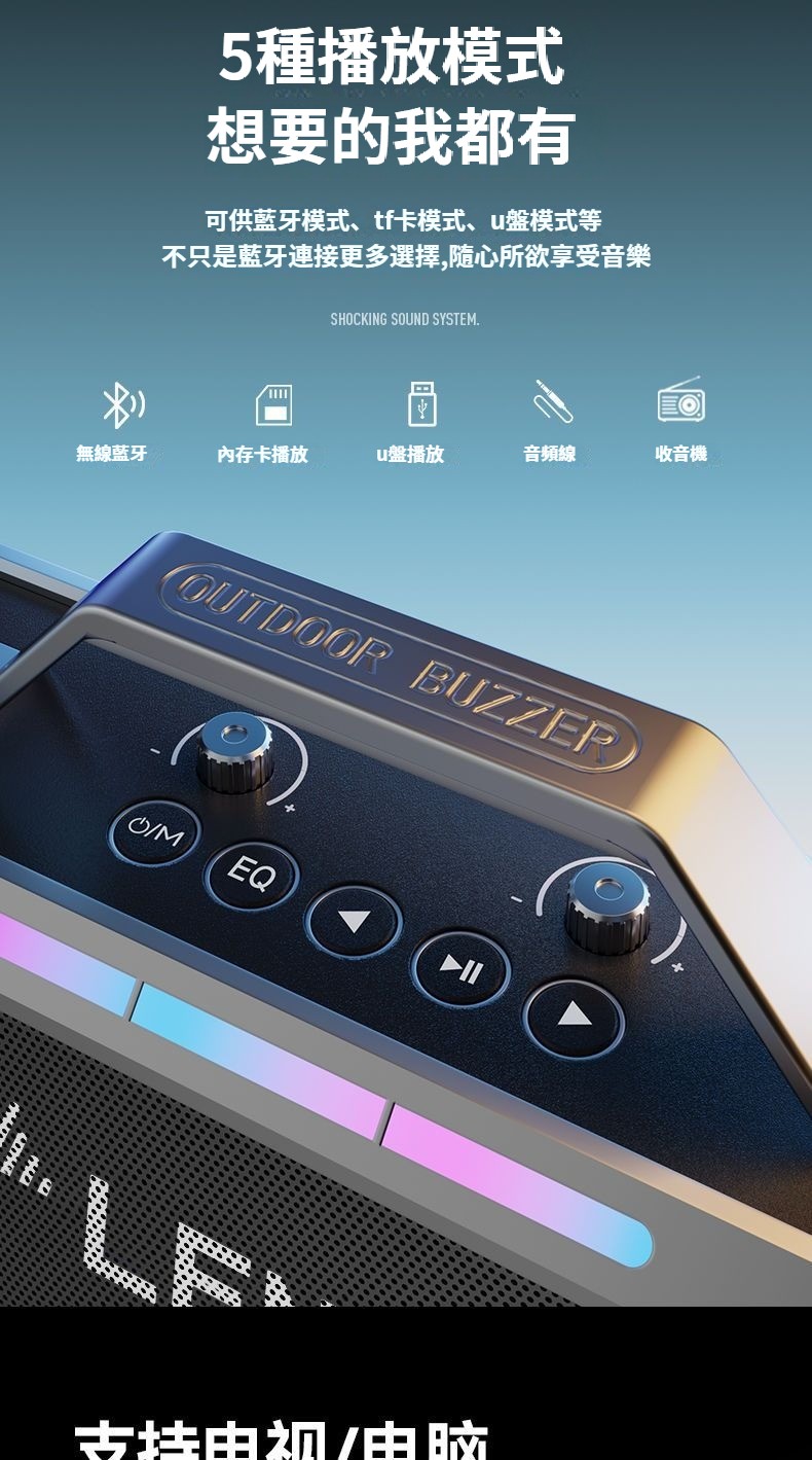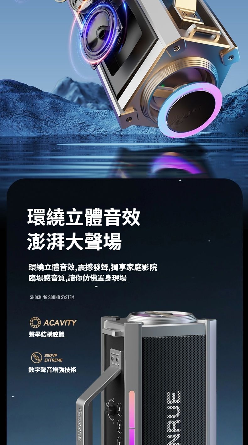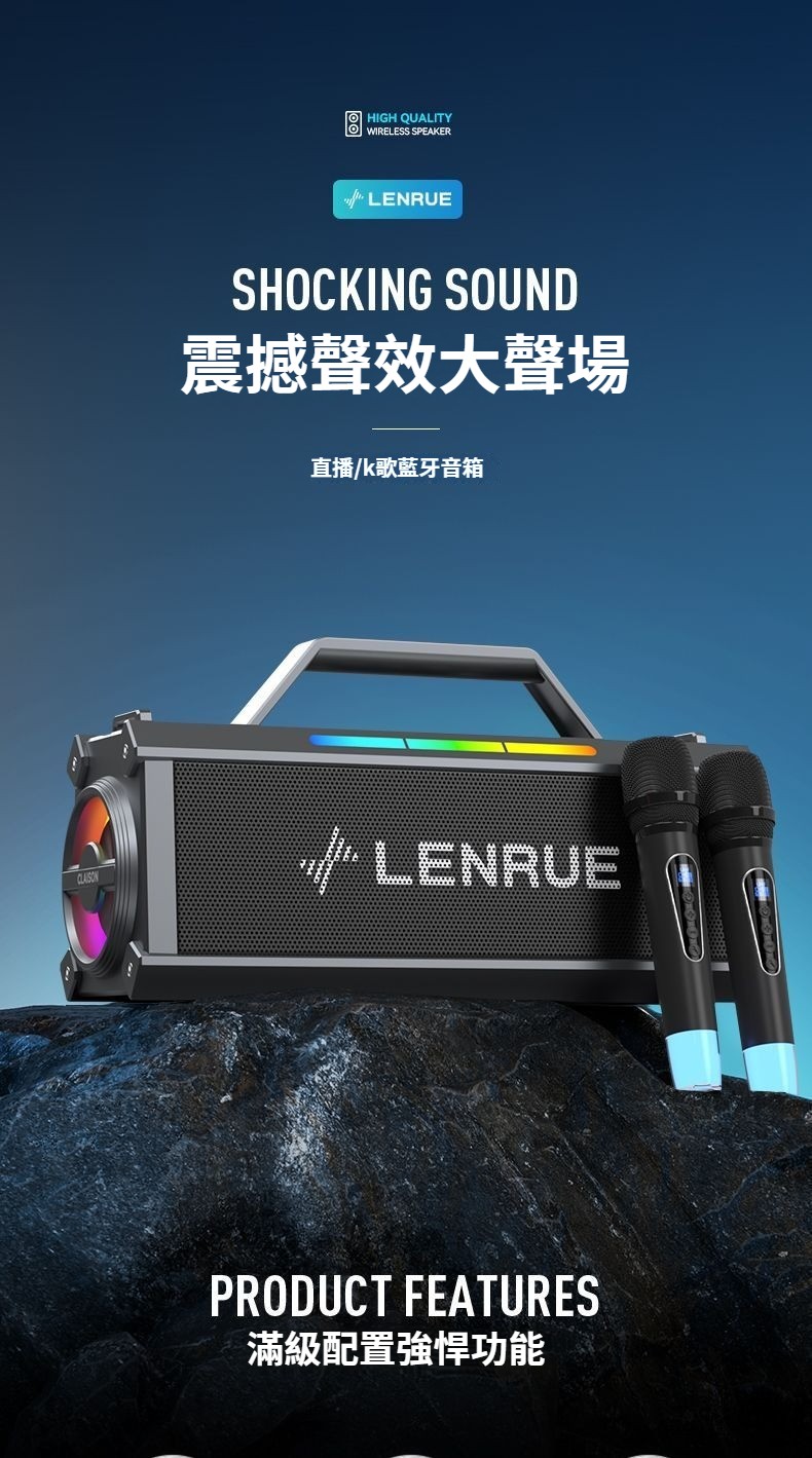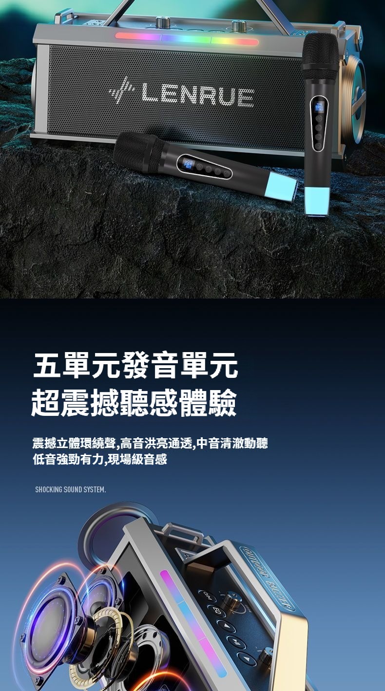 戲院級藍牙K歌音響,雙麥智慧美聲一鍵消原音七彩燈效可插卡長續航 直播/K歌帶麥藍牙音箱