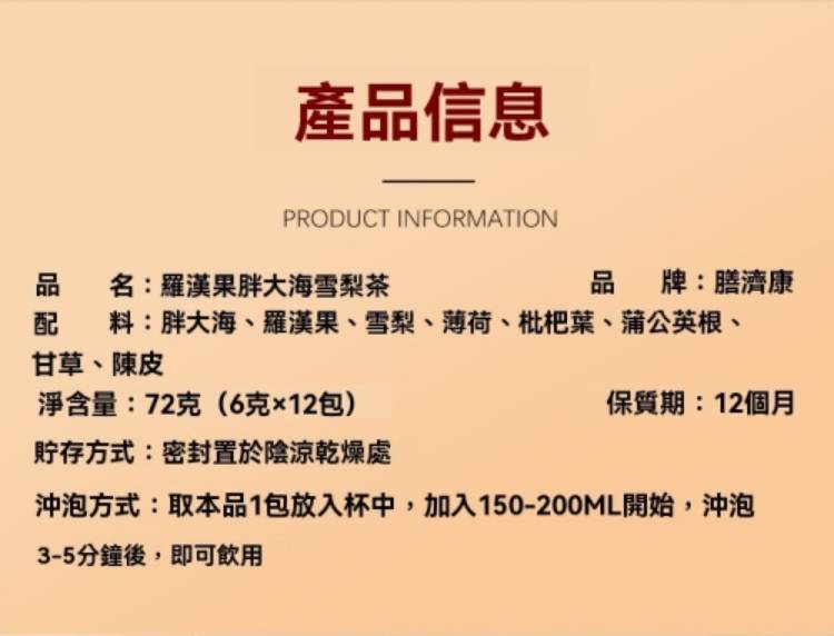 【咽喉伴侶】羅漢果胖大海雪梨茶、告別白痰、黃痰、泡沫痰、咳嗽痰,清肺止咳 NT$ 996