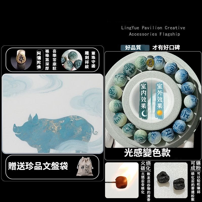 第 1 件 : 十二生肖本命佛菩提手串光感變色文玩男女佛珠學生手鍊串珠