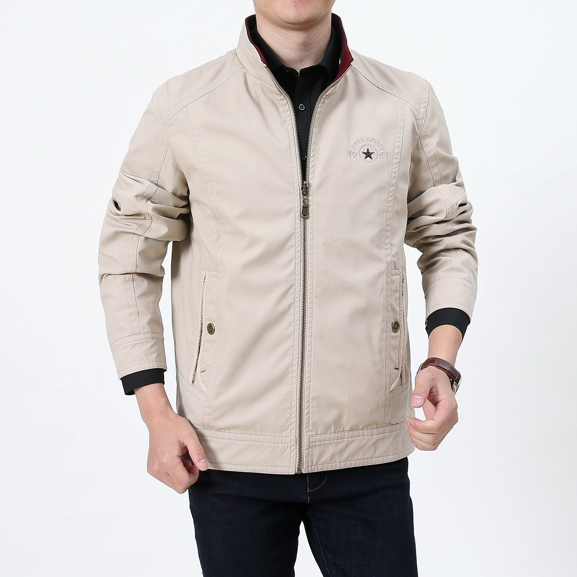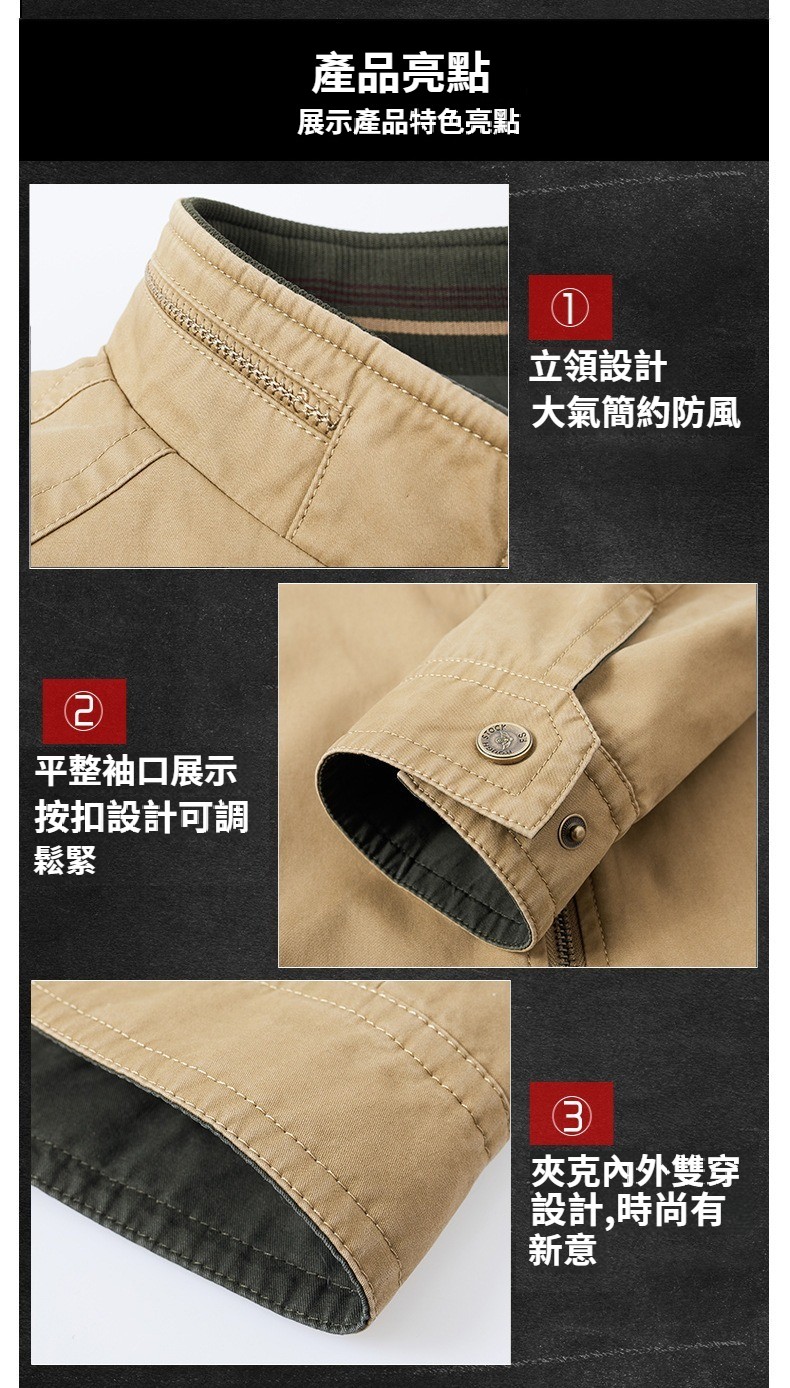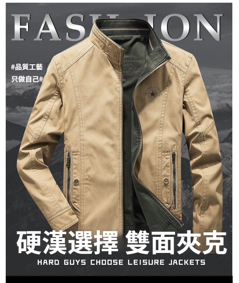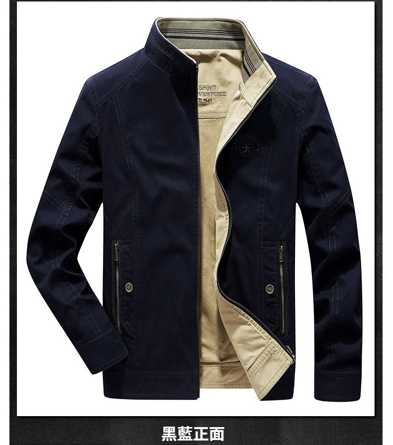 第 1 件 : 春秋新款男士兩面穿休閑夾克中年立領寬松大碼男外套