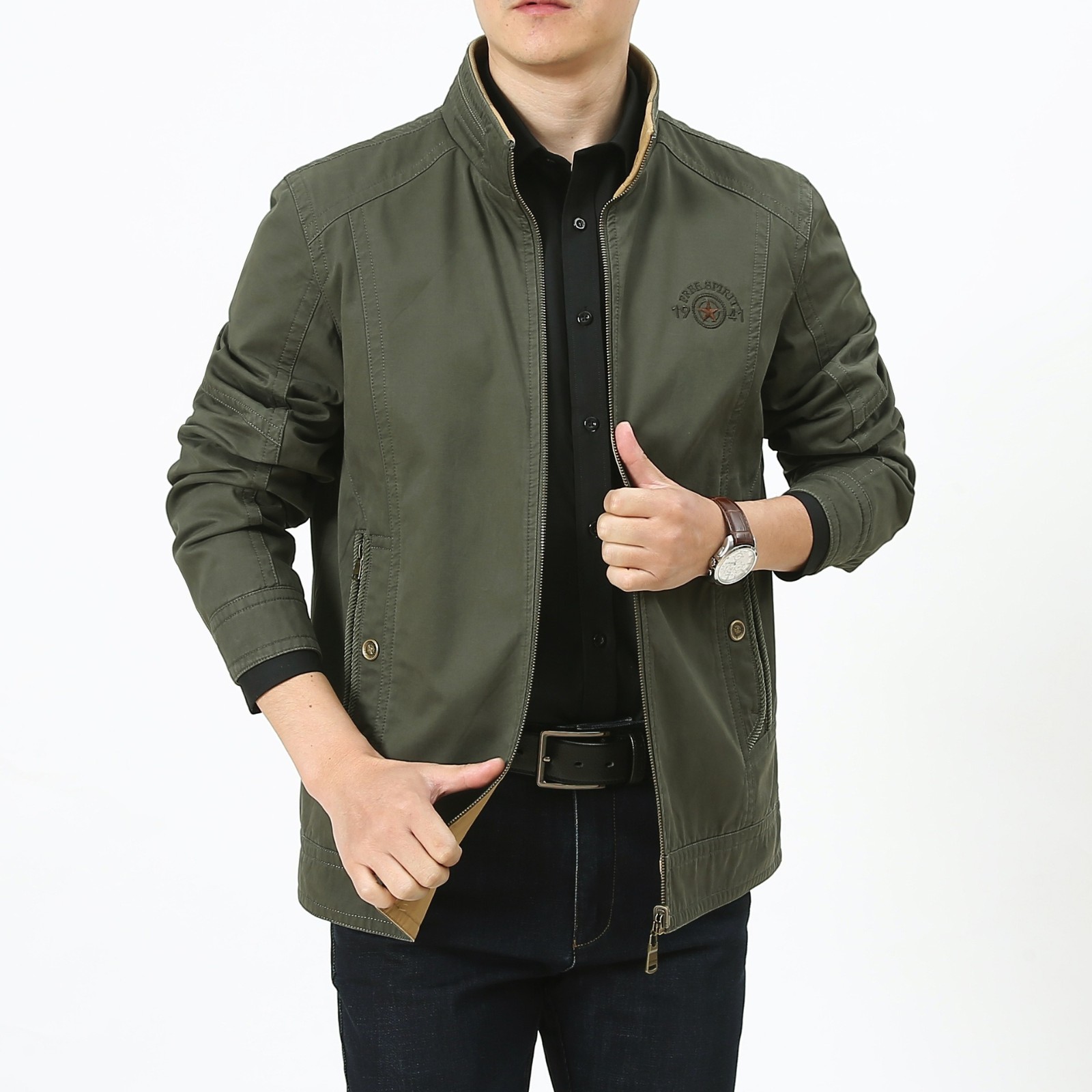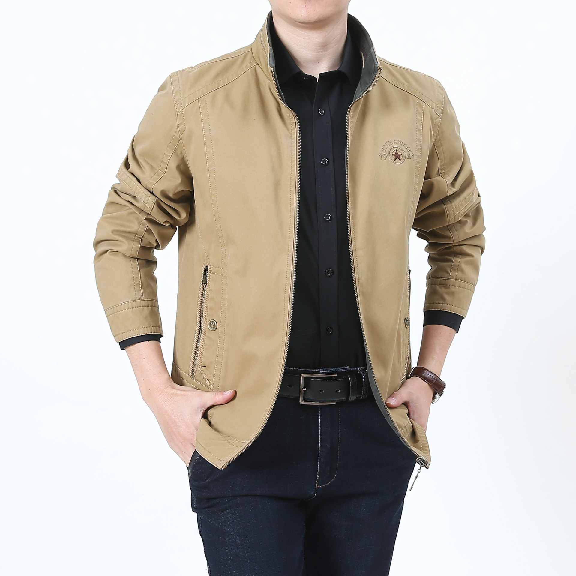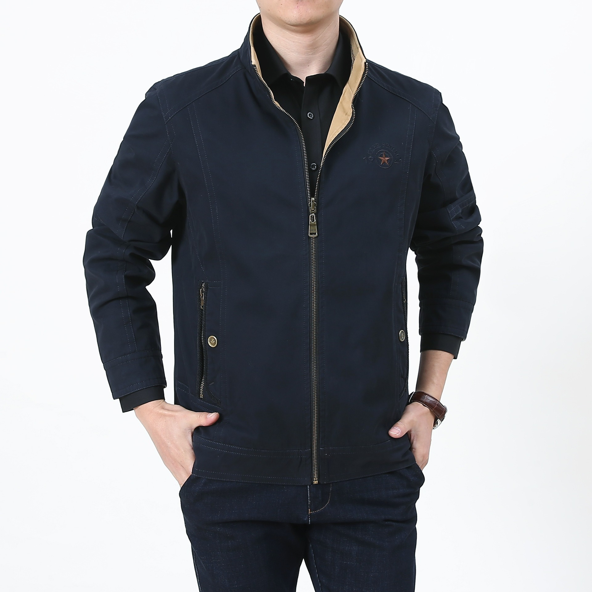 第 1 件 : 春秋新款男士兩面穿休閑夾克中年立領寬松大碼男外套