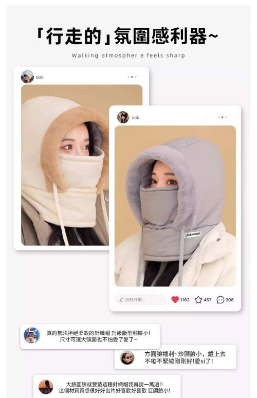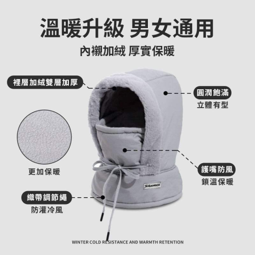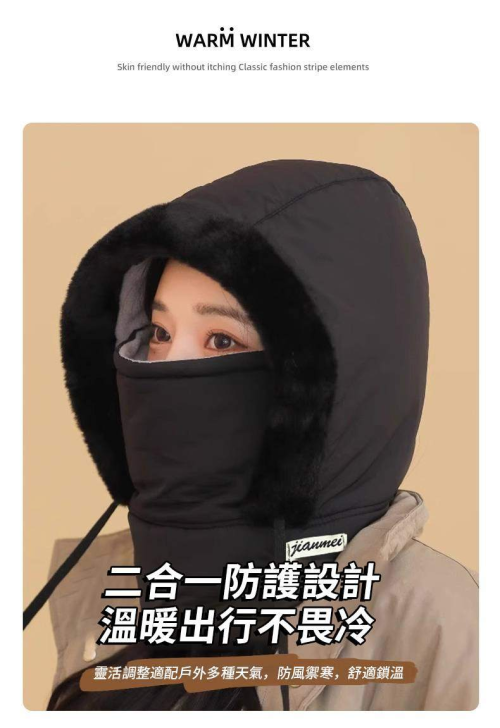 第 1 件 : 冬季新款保暖雷鋒帽 加絨加厚 護耳防寒 面罩圍脖一體防風騎行帽