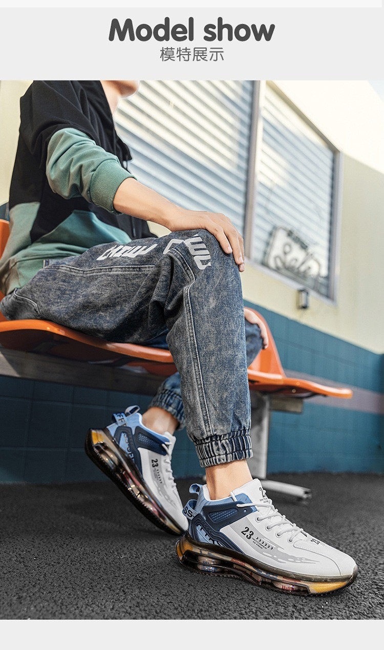 第 1 件 : 男鞋網面網布鞋氣墊初中學生跑鞋運動鞋休閑百搭透氣鞋