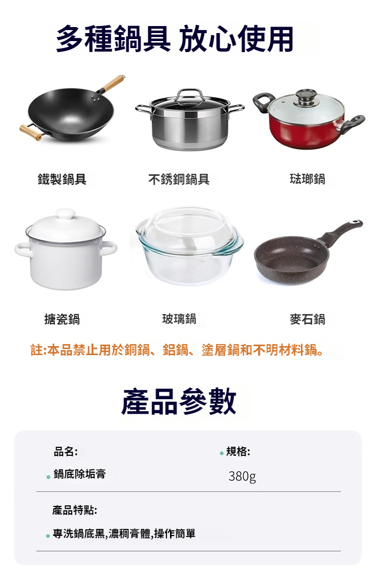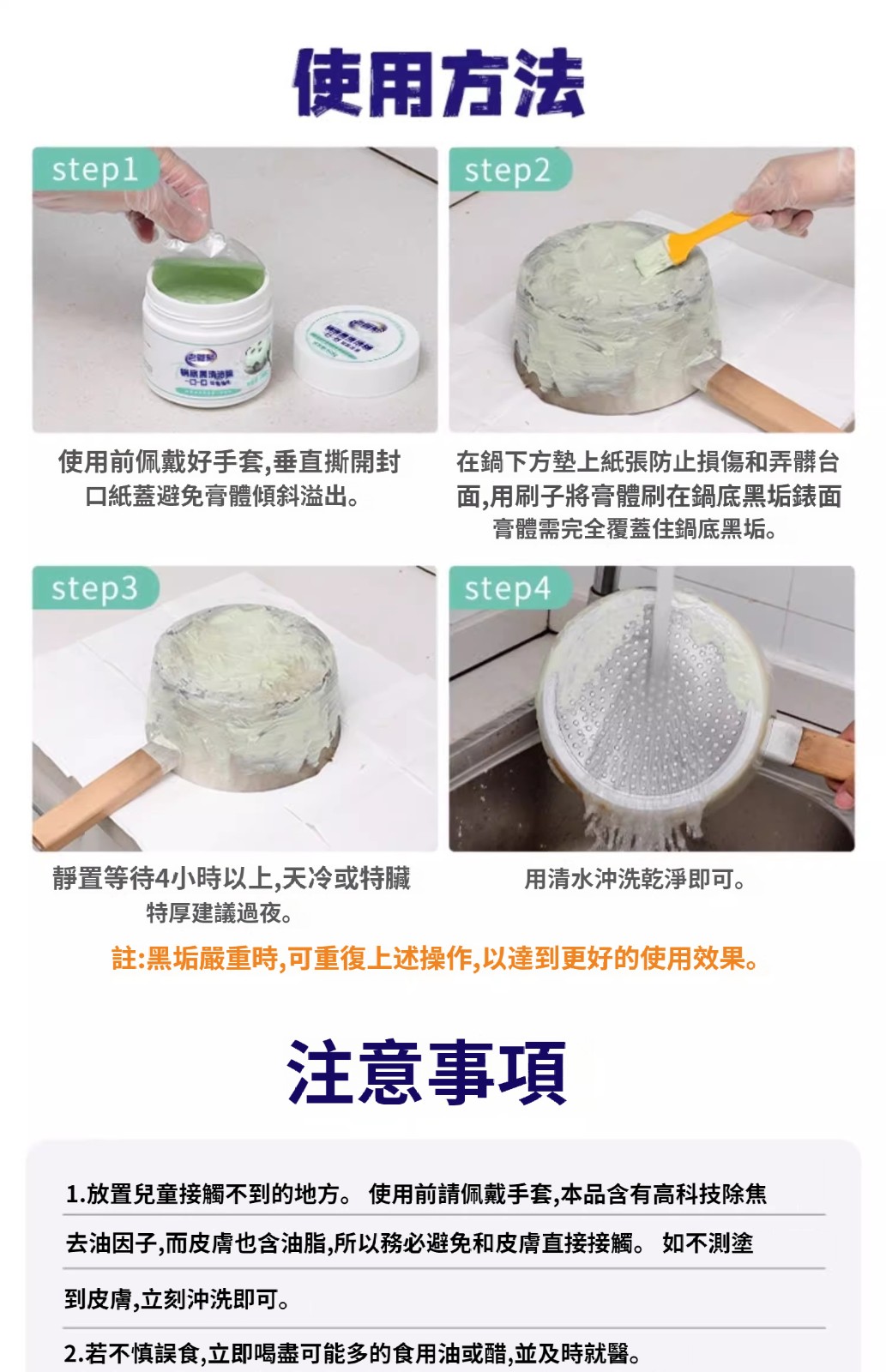 鍋底黑垢清潔劑不鏽鋼清洗神器廚房去重油污椰子油強力去污膏除垢