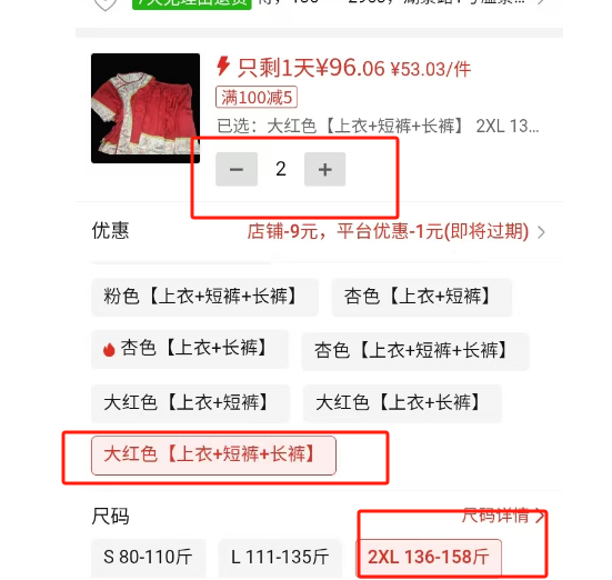 ①宮廷服睡衣大紅色三件套*2套+