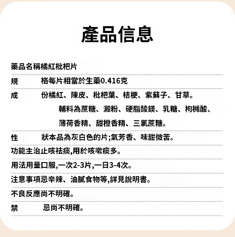 橘紅枇杷片止咳祛痰感冒支氣管炎咳嗽痰多 NT$ 890