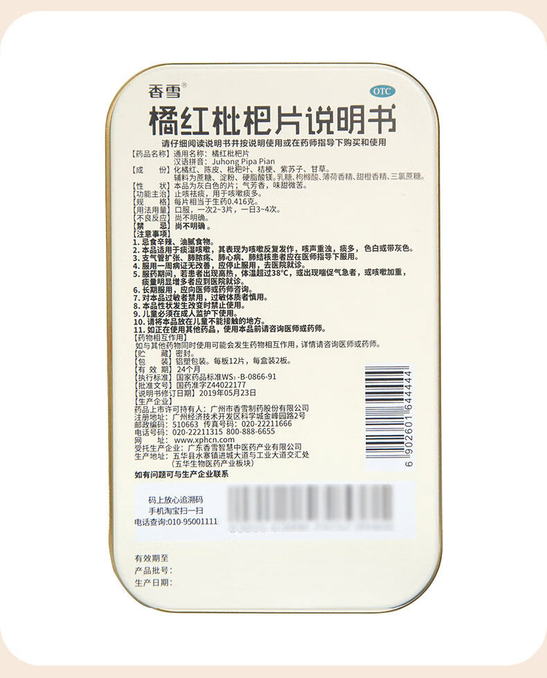 橘紅枇杷片止咳祛痰感冒支氣管炎咳嗽痰多