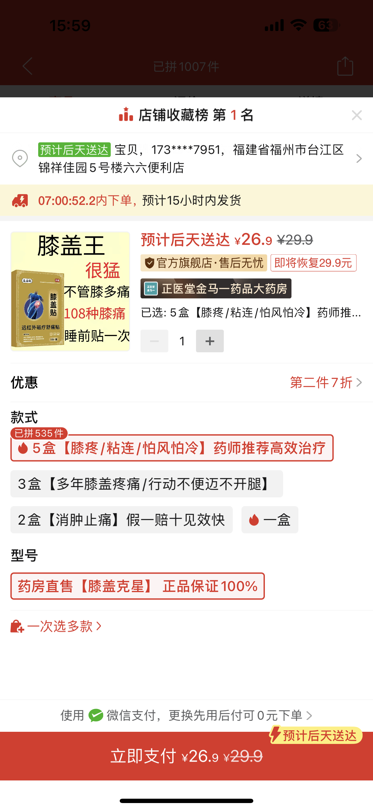 ①益扁鶴膝蓋貼5盒25貼 ②美國大陰莖3粒