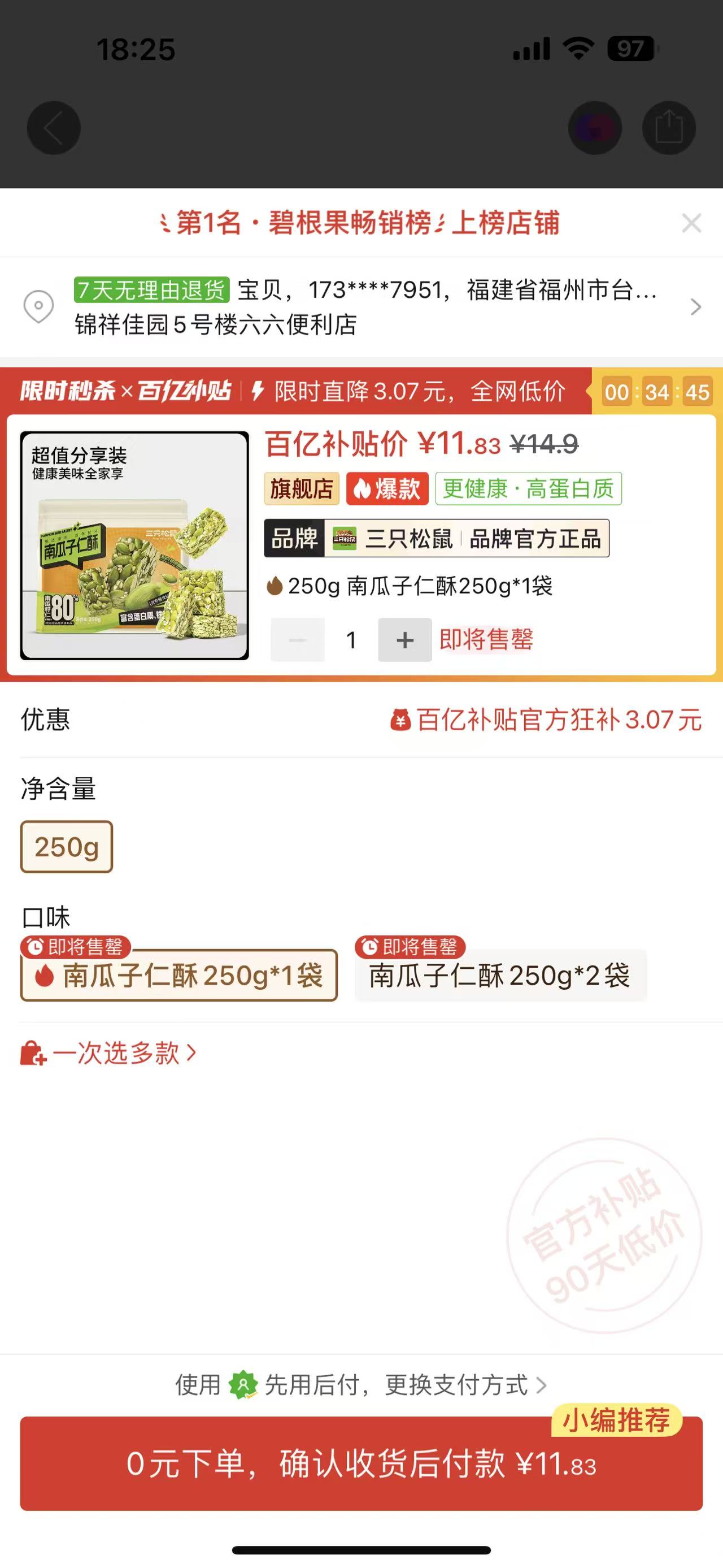 三隻松鼠南瓜子仁酥:https://mobile.yangkeduo.com/goods2.html?ps=g3QLIwUQii