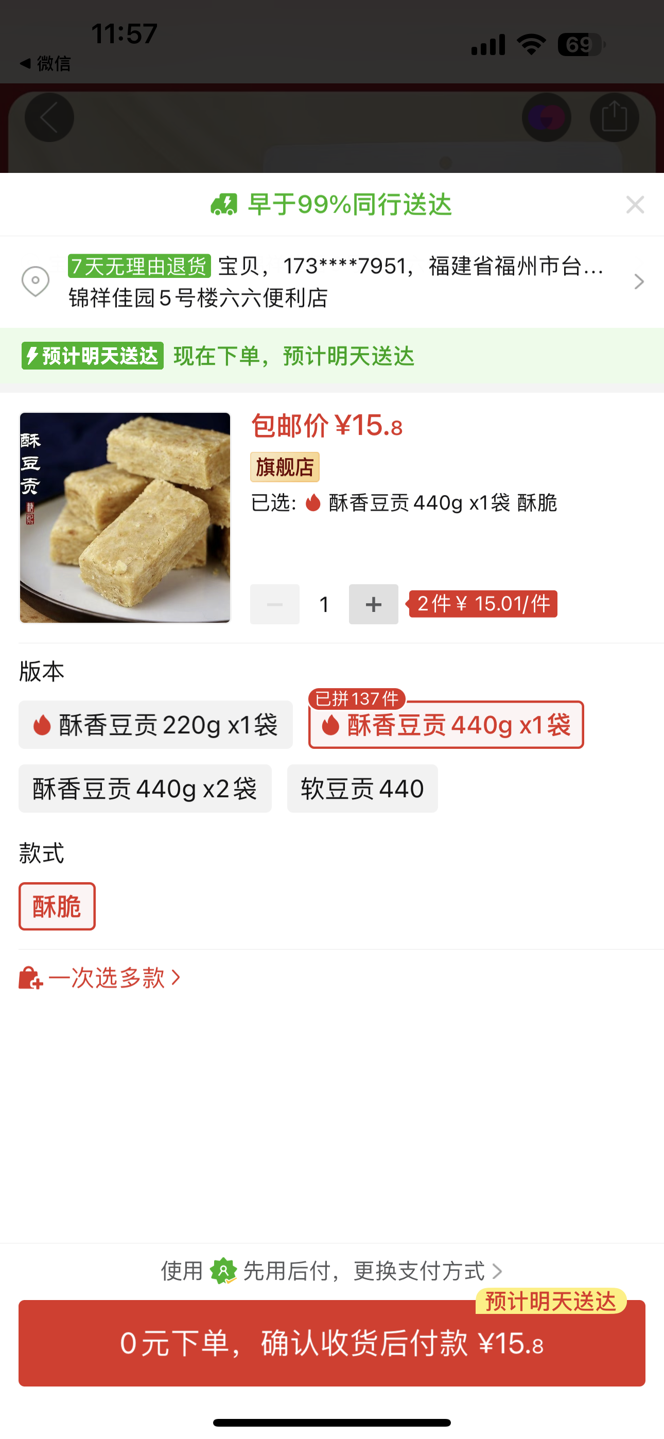 ②酥豆貢440G1袋(15.8元)https://mobile.yangkeduo.com/goods.html?ps=H6eHqU50Oh