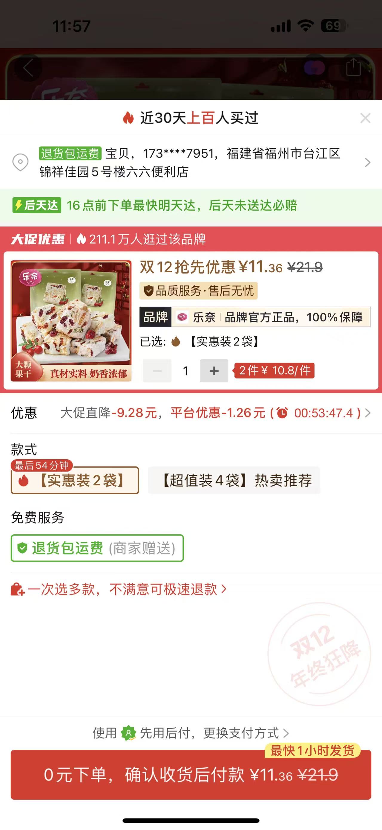 ③蔓越莓雪花酥1袋(5.68元)https://mobile.yangkeduo.com/goods.html?ps=QW7ORJ1dn7