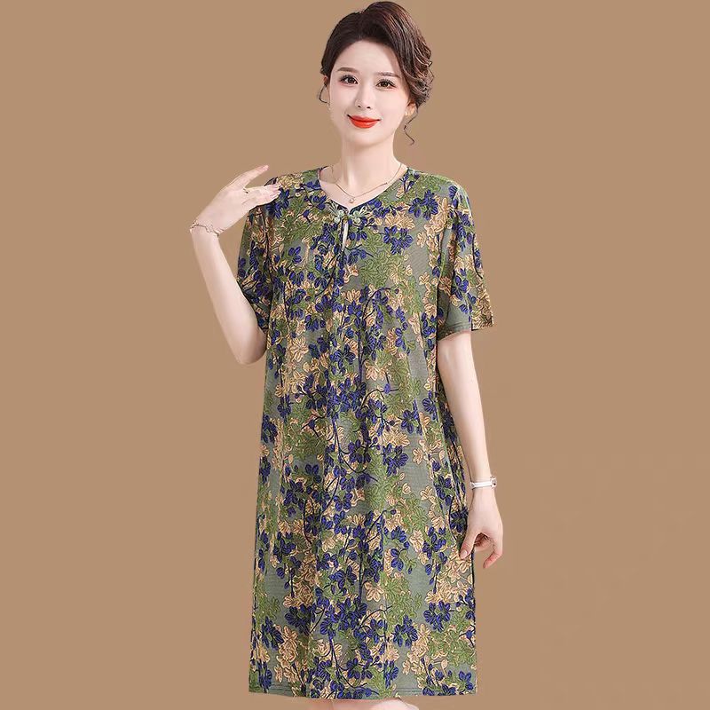 【淘宝】大促价保 https://e.tb.cn/h.idH2YrW3ZZ427wC?tk=pgUKUuellTt MF278 「时尚中老年冰丝麻连衣裙女胖mm妈妈夏装200斤短袖中长款洋气裙子」