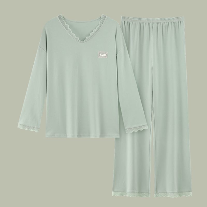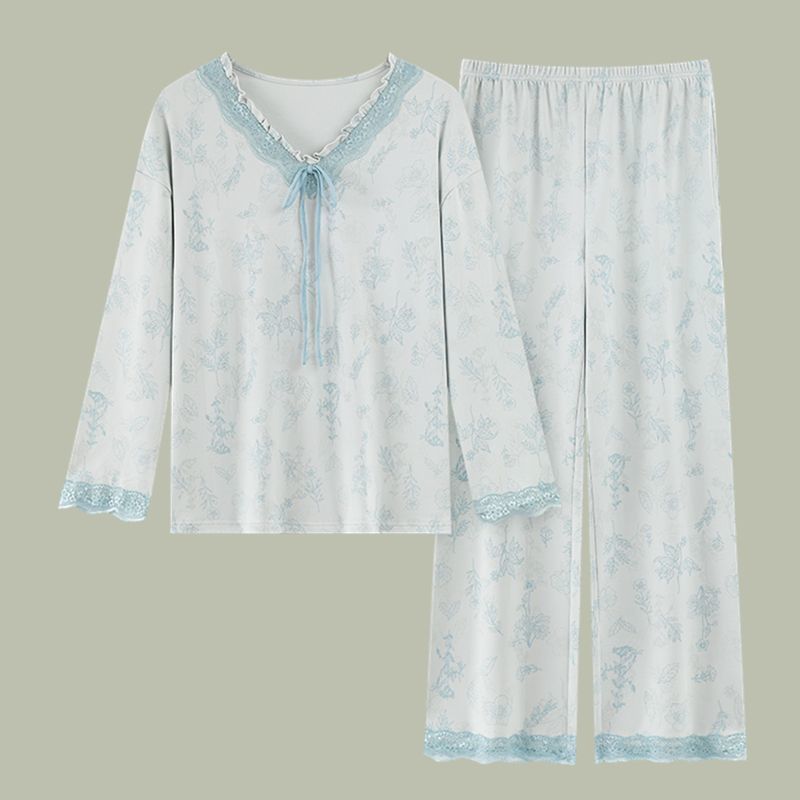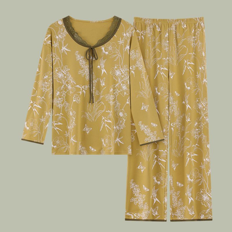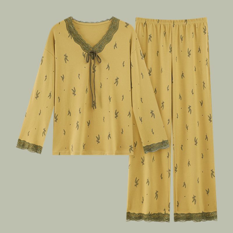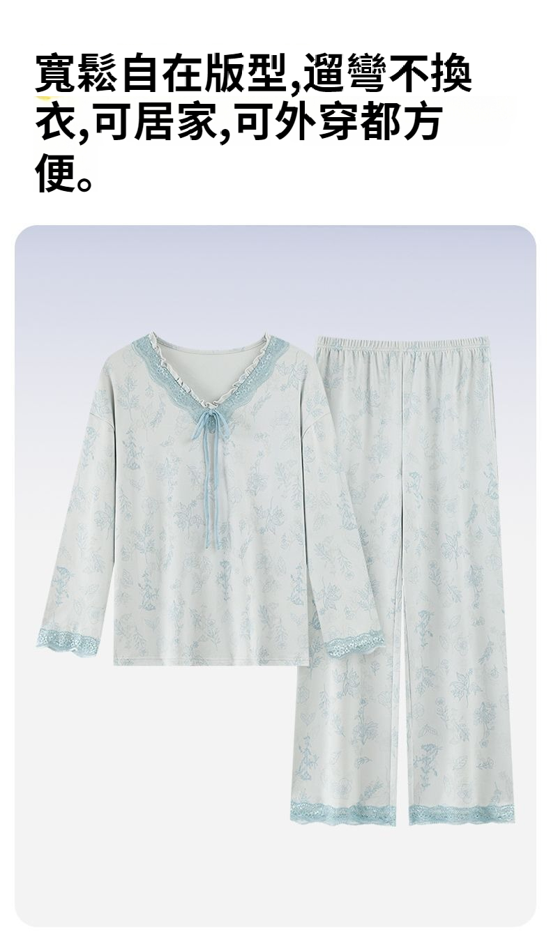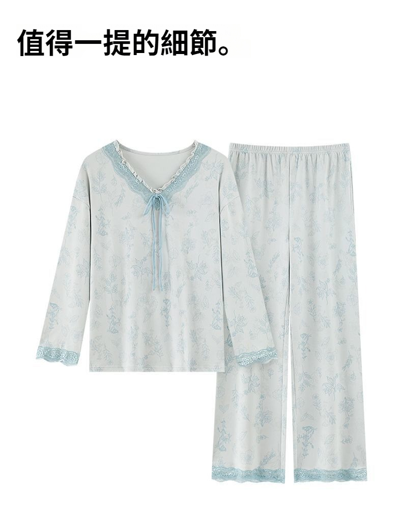 第 1 件 : 女士純棉睡衣春秋季長袖v領休閒小香風中年可外穿家居服套裝