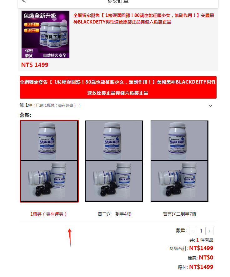 ①美國黑神1瓶+②印度黑馬1粒+③威爾剛1粒