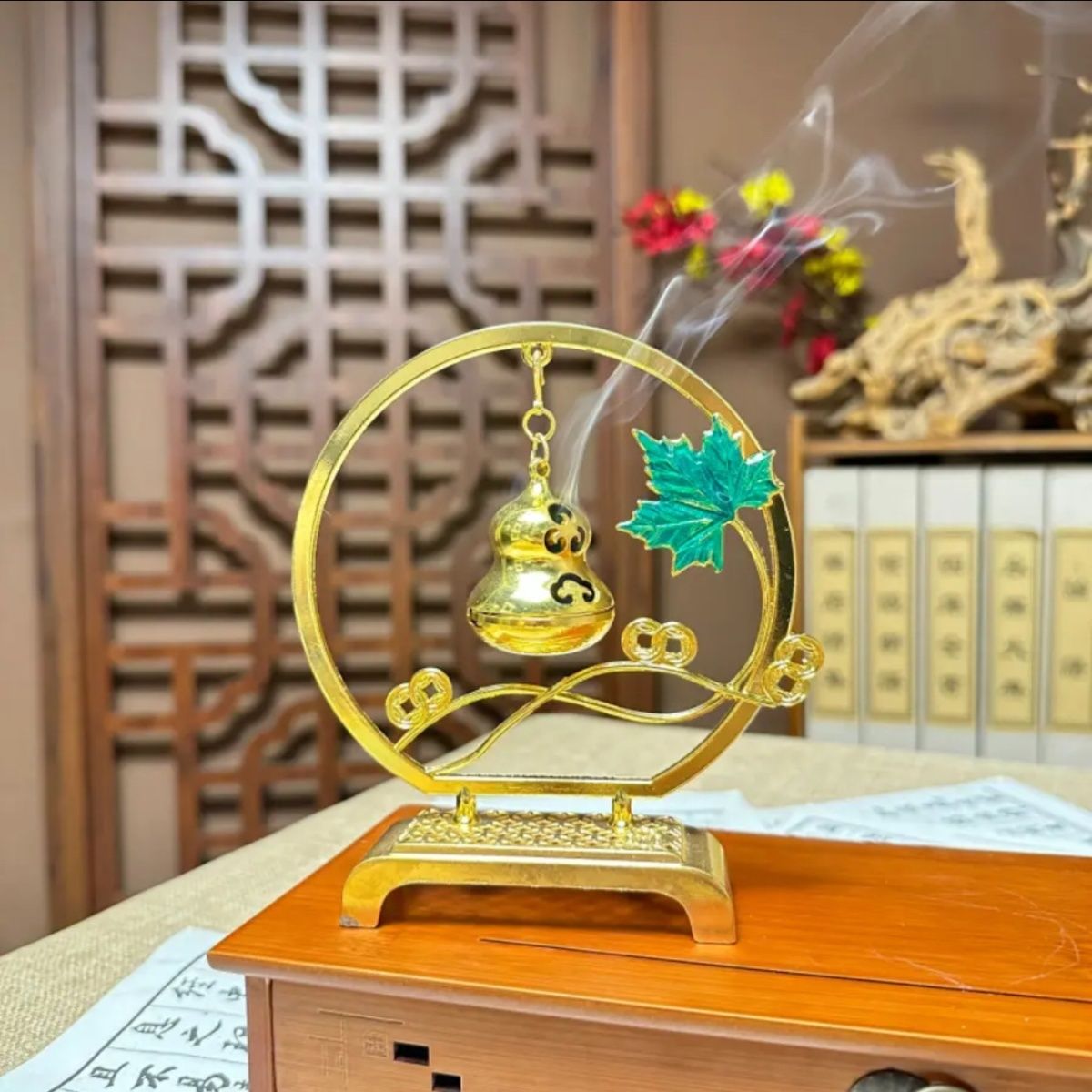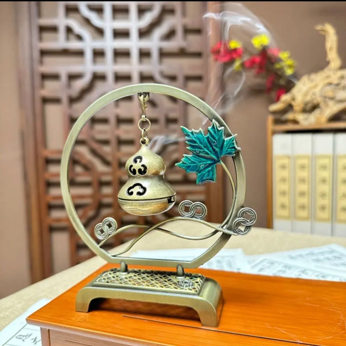 一葉發財創意吊式香爐家居擺飾香薰盤香線香吊爐香爐迷你祥雲香