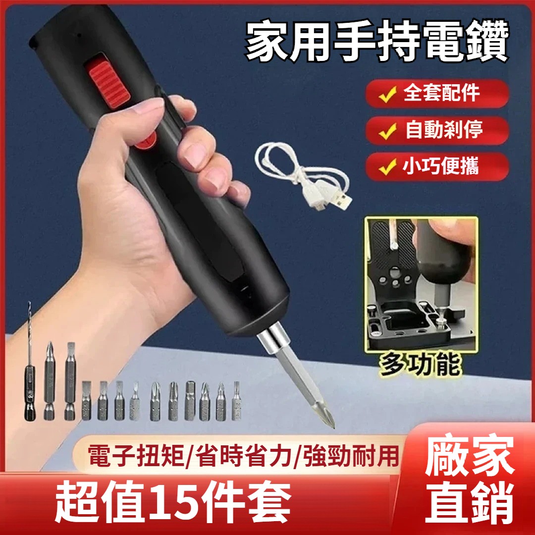 【搶! 超值15件套裝】輕巧如筆,鑽孔如寶!說拜拜笨重電鑽,全家都是修理工! ——超萌身材+超強動力,家用維修so easy!新款電動螺絲起子,充電多功能家用小型螺絲批,迷你電起子 NT$ 850