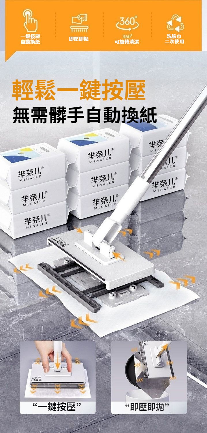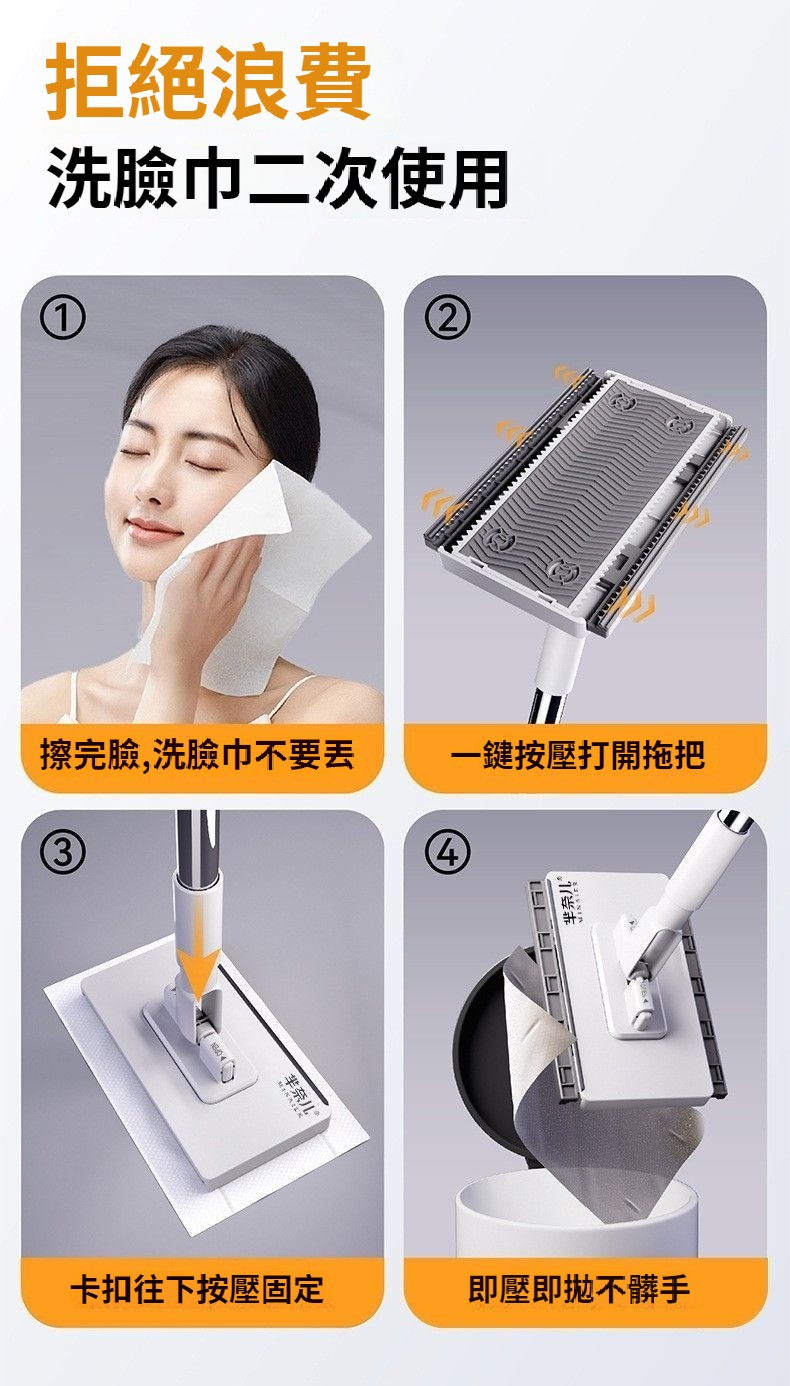 二次利用洗臉巾拖把 免髒手懶人家用擦臉濕紙巾小拖把