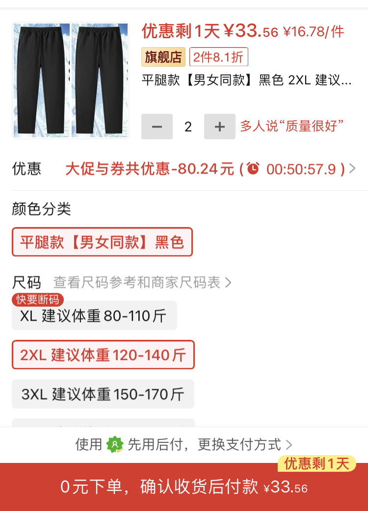 XXL加絨直筒褲2條