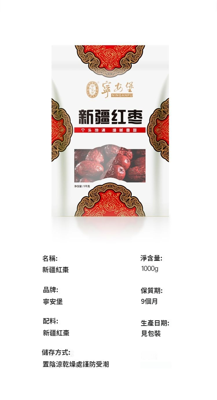 寧安堡新疆紅棗禮袋送禮煲湯滋養養生保健官方藥食同源大棗