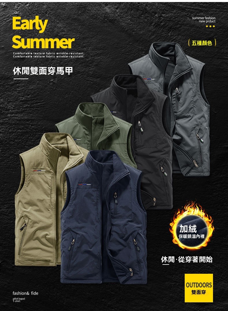 雙面戶外馬甲 高檔雙面戶外馬甲 一衣兩穿 應對多變戶外 防風防水面向風雨 翻面透氣應對晴空 輕便收納 助你輕鬆出發 無懼天氣突變