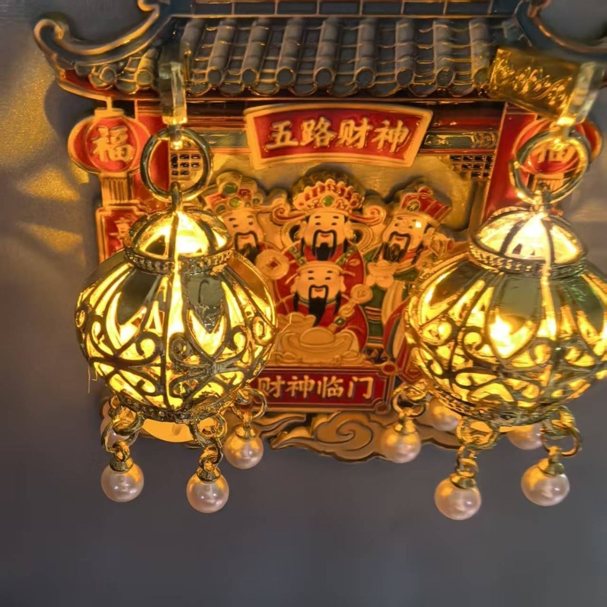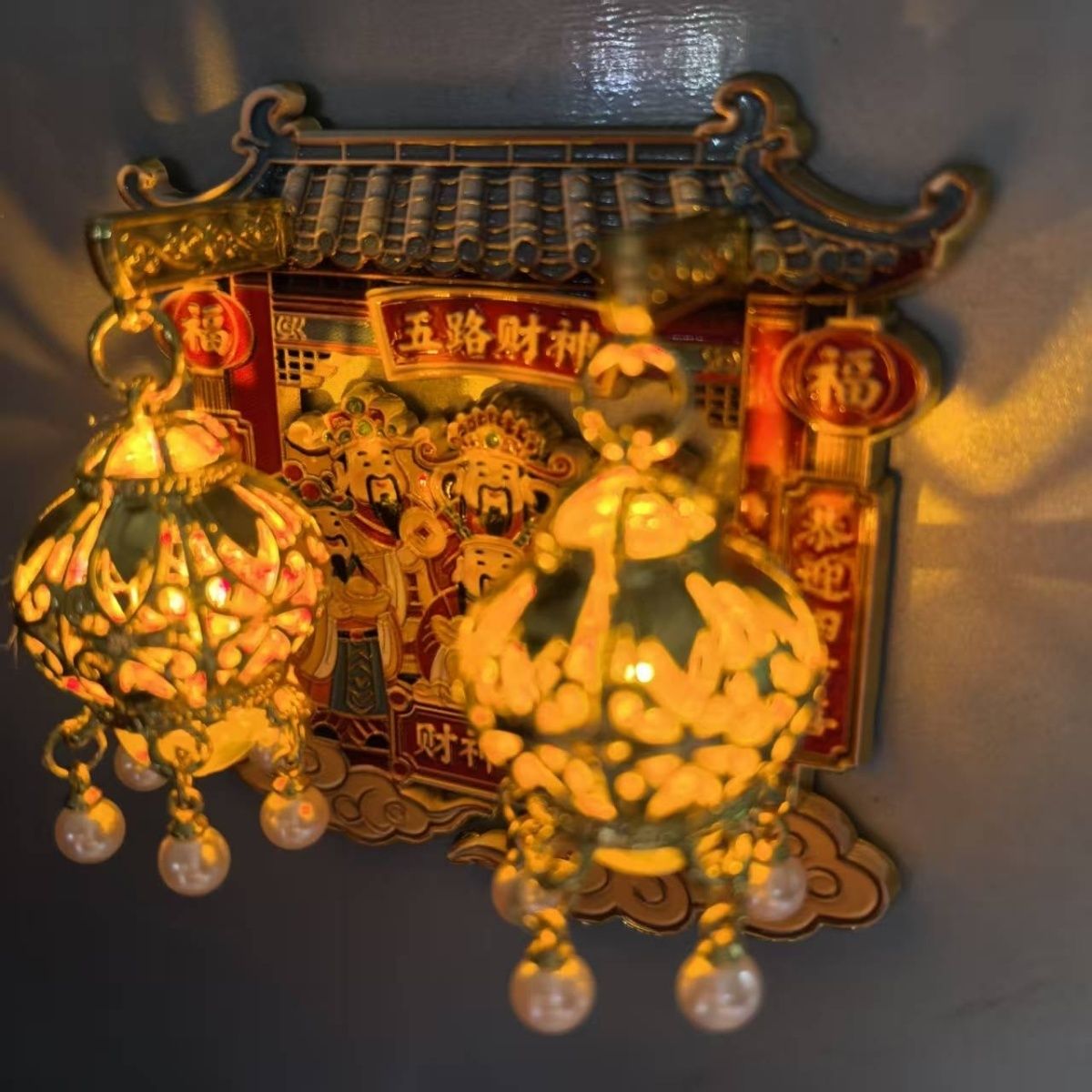 五路財神禮品金屬發光冰箱貼,招財進寶精致春節禮品過年送禮佳品