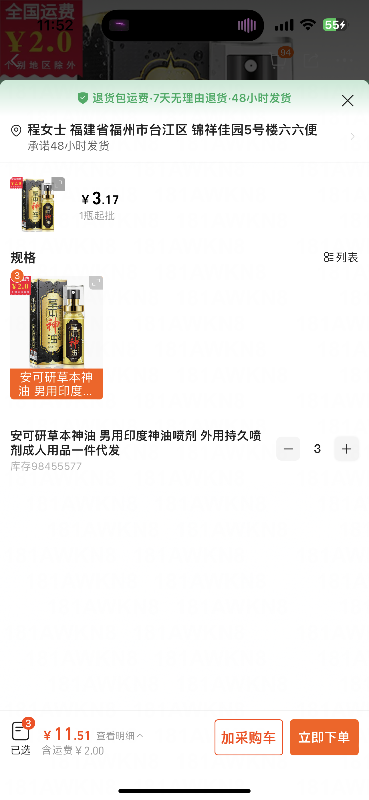 ①草本神油3瓶 ②藍鑽1粒 ③印度黑馬1粒(17.51元)