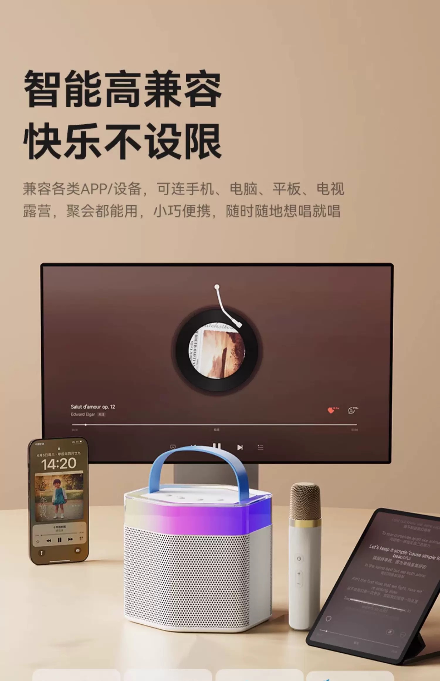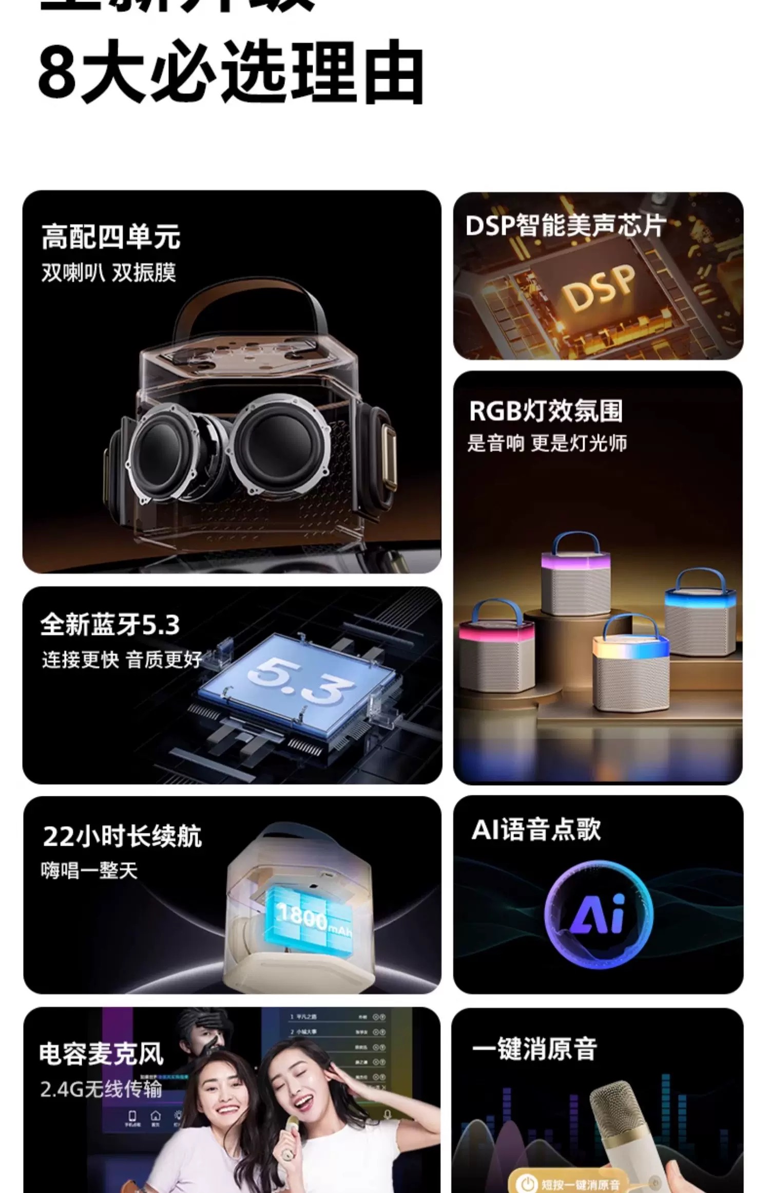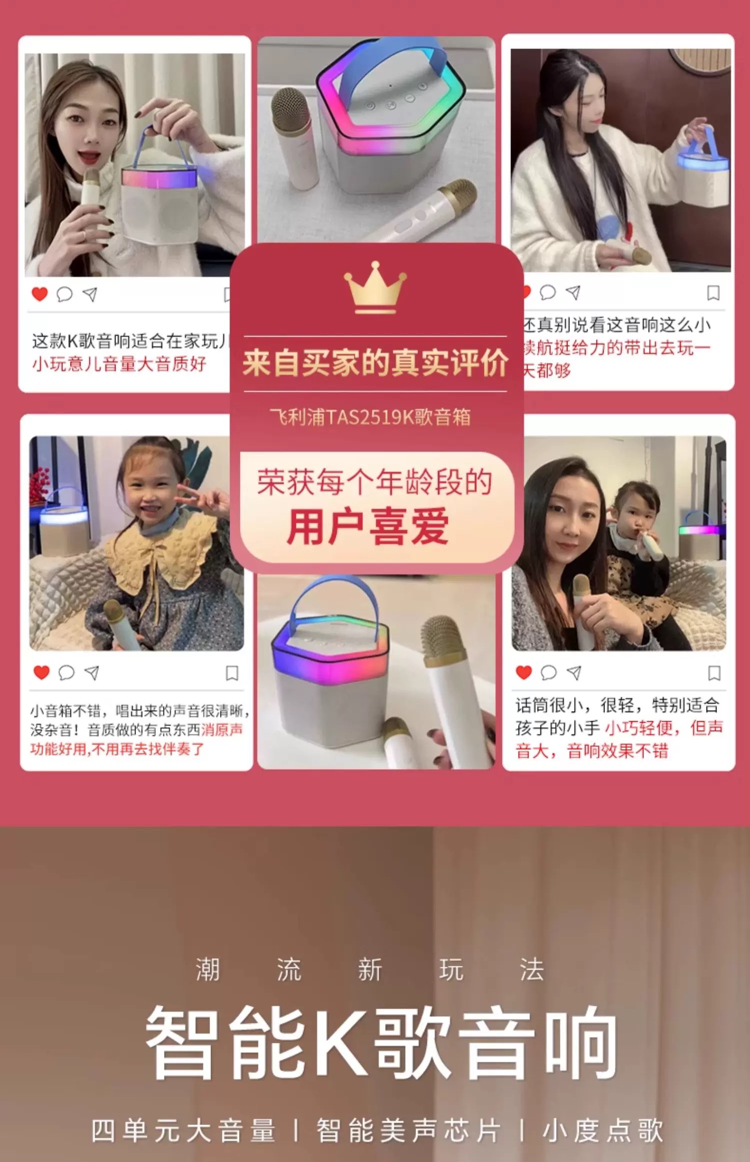 飛利浦TAS2519音響藍牙音箱小型話筒家用K歌一體麥克風家庭KTV