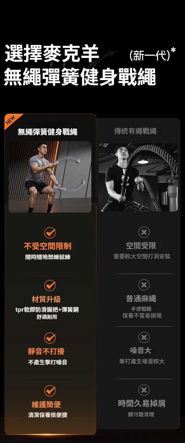 第 1 件 : 無繩彈簧戰繩新款健身甩繩體能訓練繩臂力肌肉鍛煉室內戰繩運動