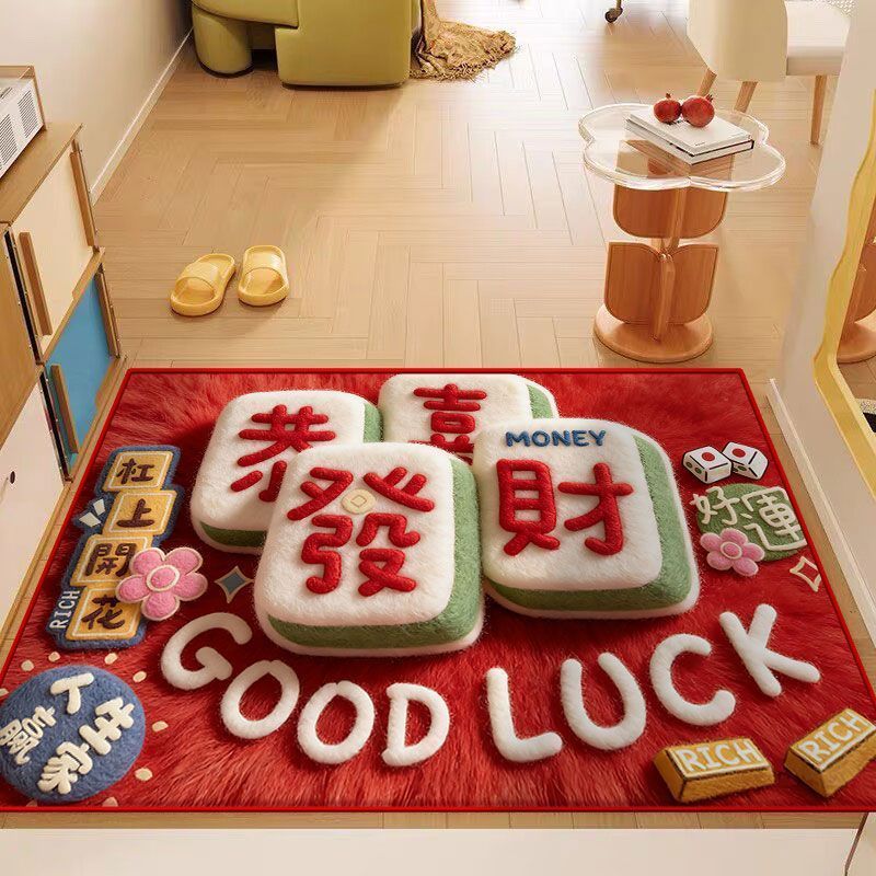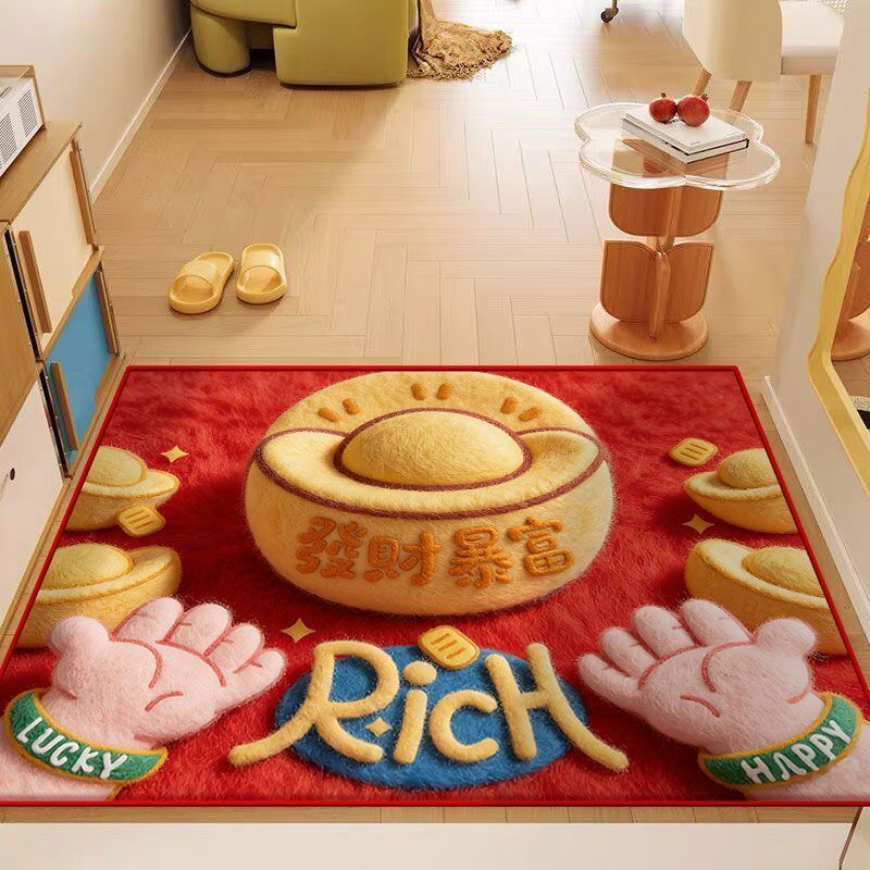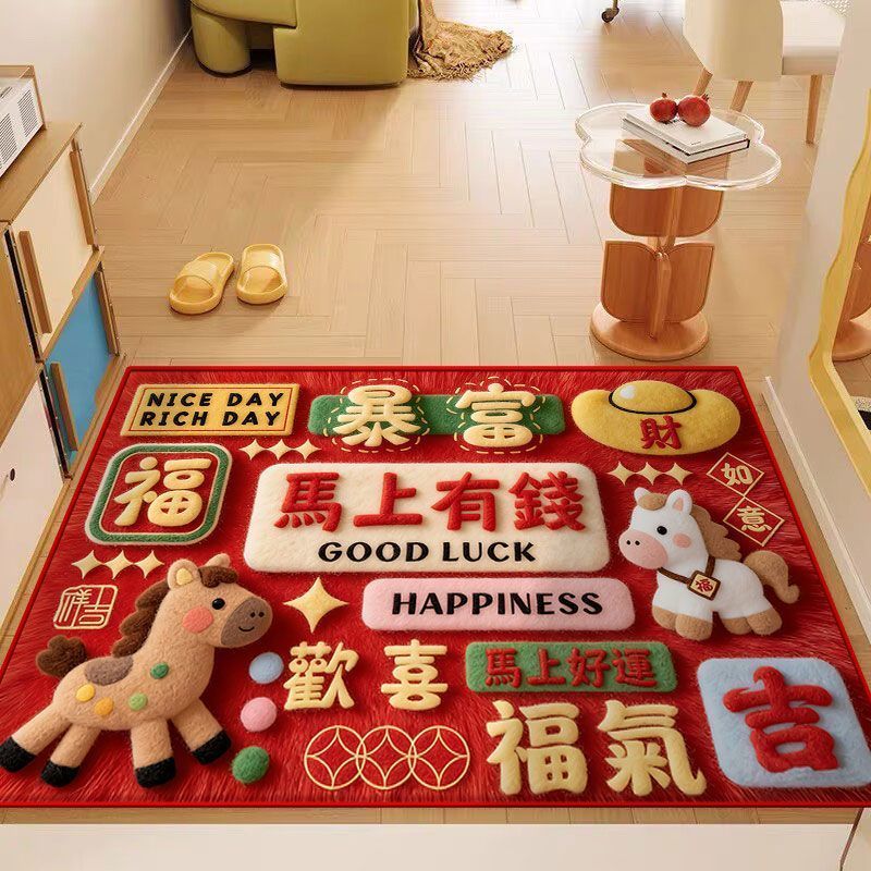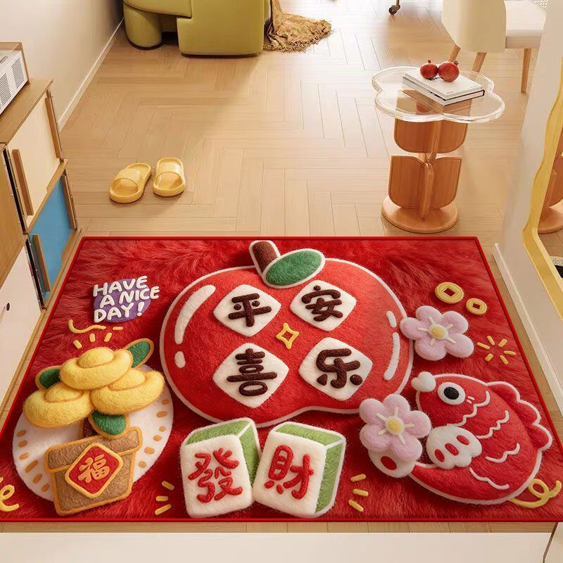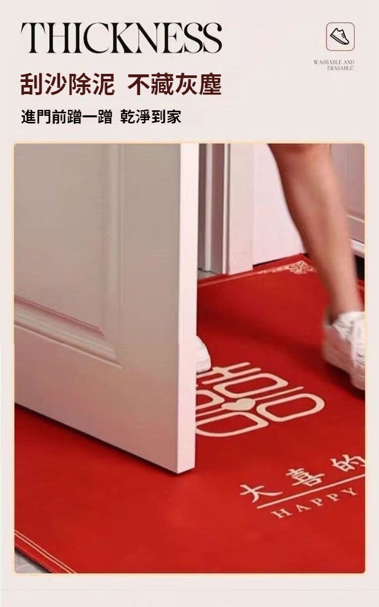 第 1 件 : 水晶絨加厚紅色喜慶門墊入戶門玄關地毯地墊臥室進門家用腳墊門墊