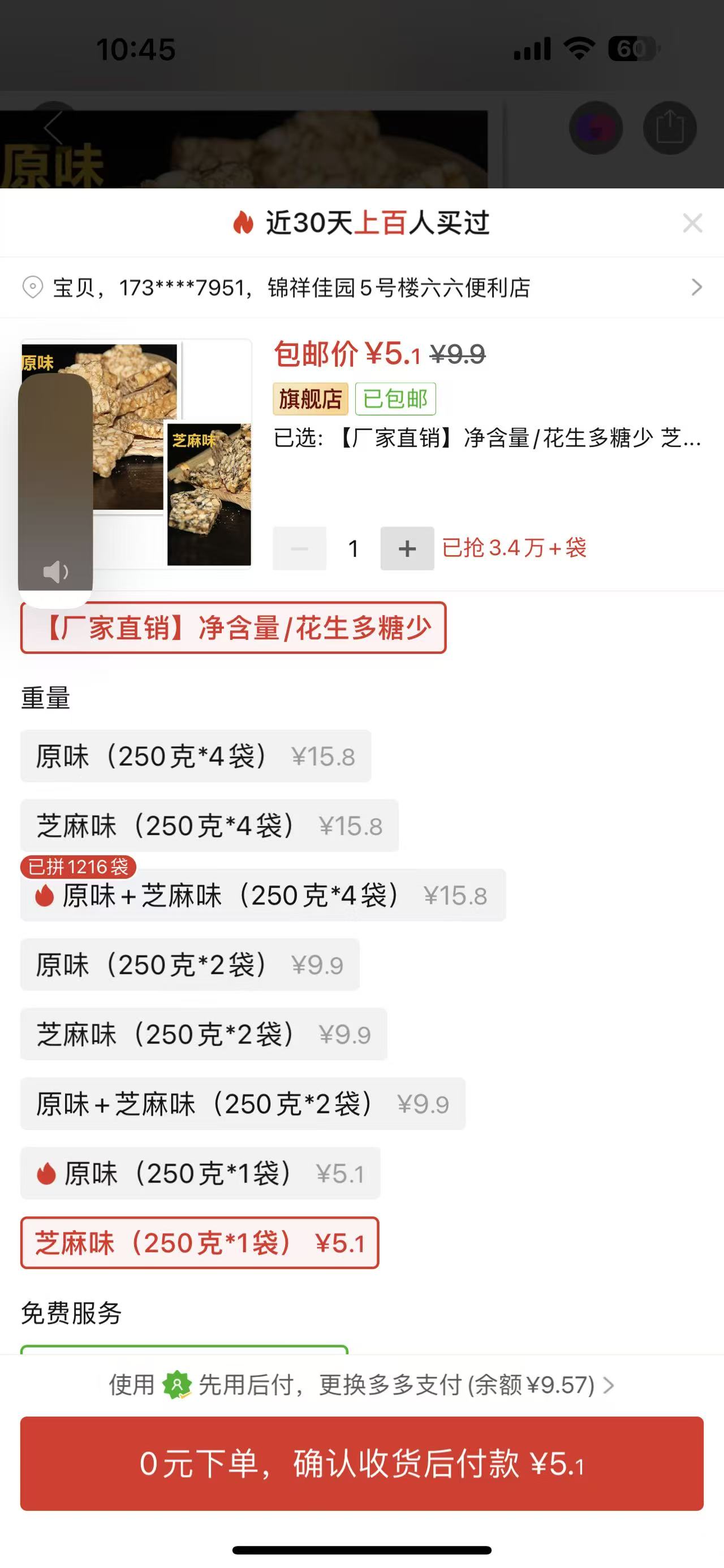 ②花生糖原味250g1包 5.1元 https://mobile.yangkeduo.com/goods2.html?ps=x9wBVaEmMu