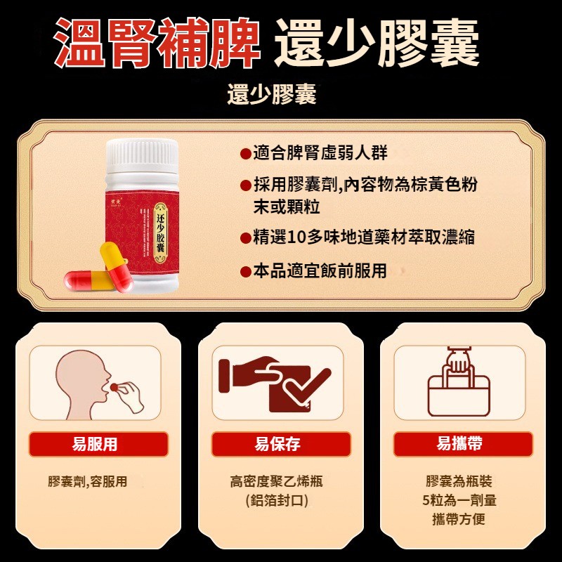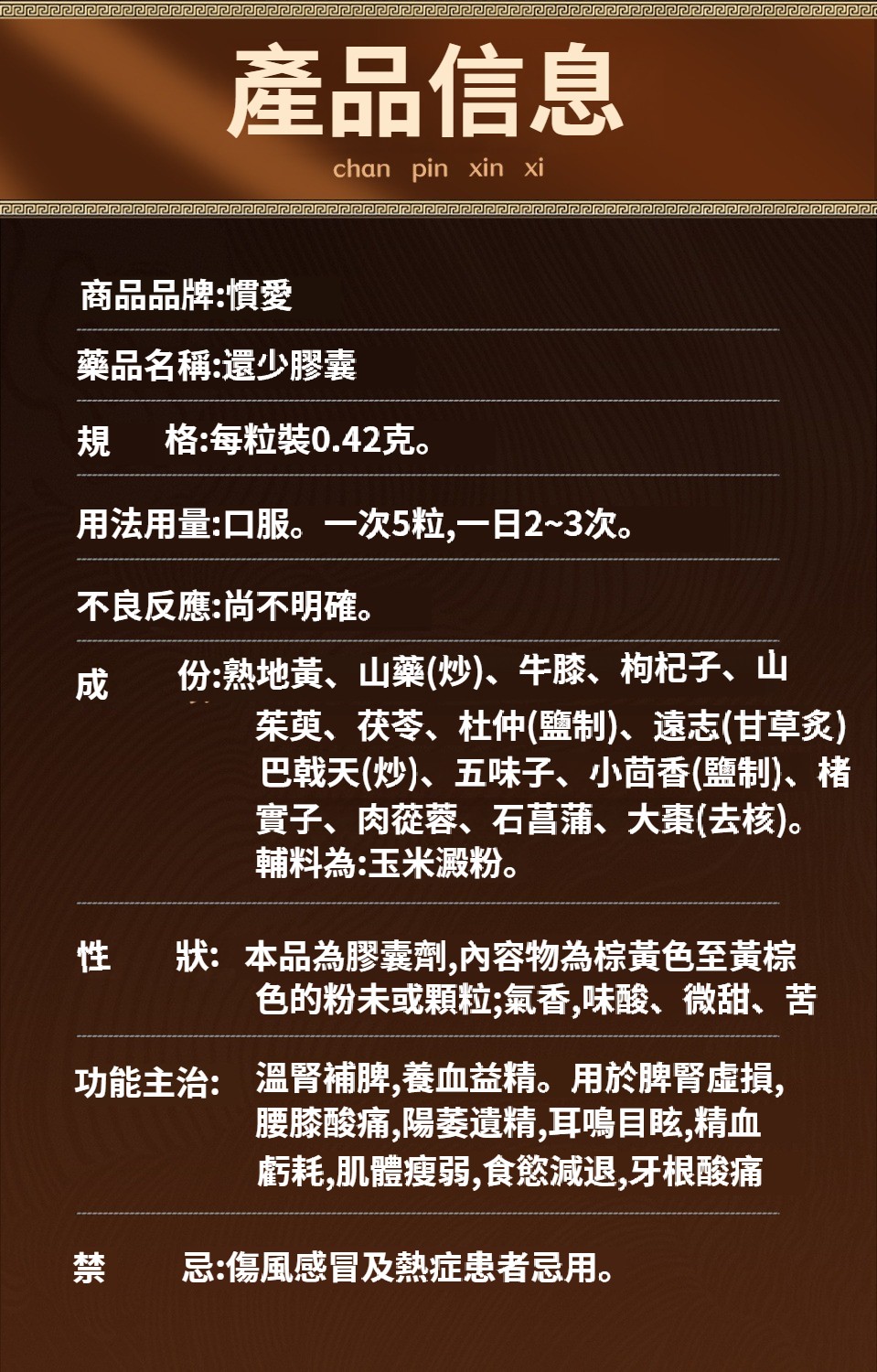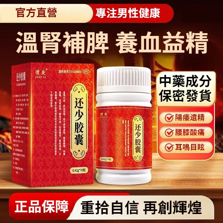 還少膠囊 0.42g*70粒/盒 慣愛 還少膠囊陽萎早洩遺精腎虛腰膝酸痛溫腎補脾 NT$ 999