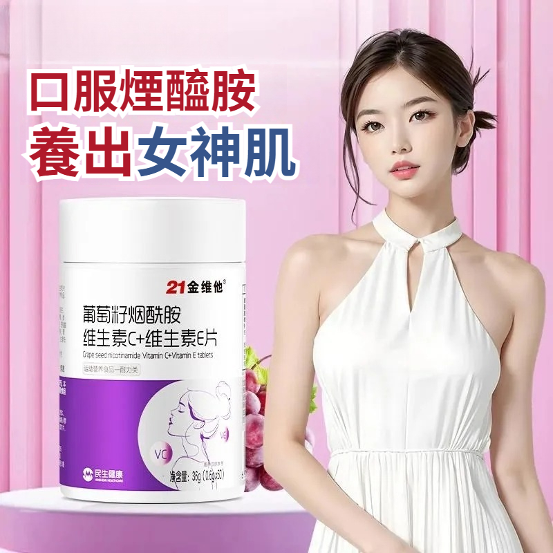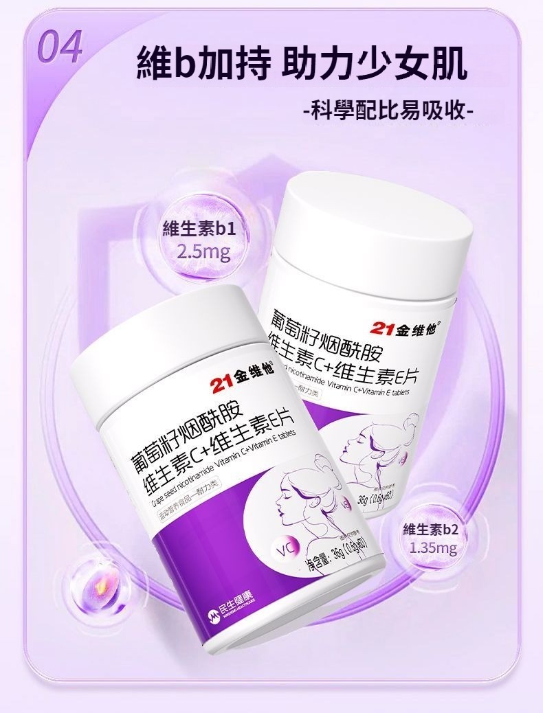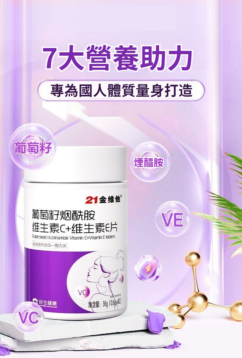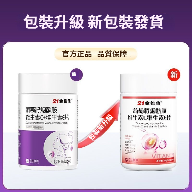 21金維他葡萄籽煙酰胺維生素C+E,60粒多種vcb煙酸非淡斑美白耐力類
