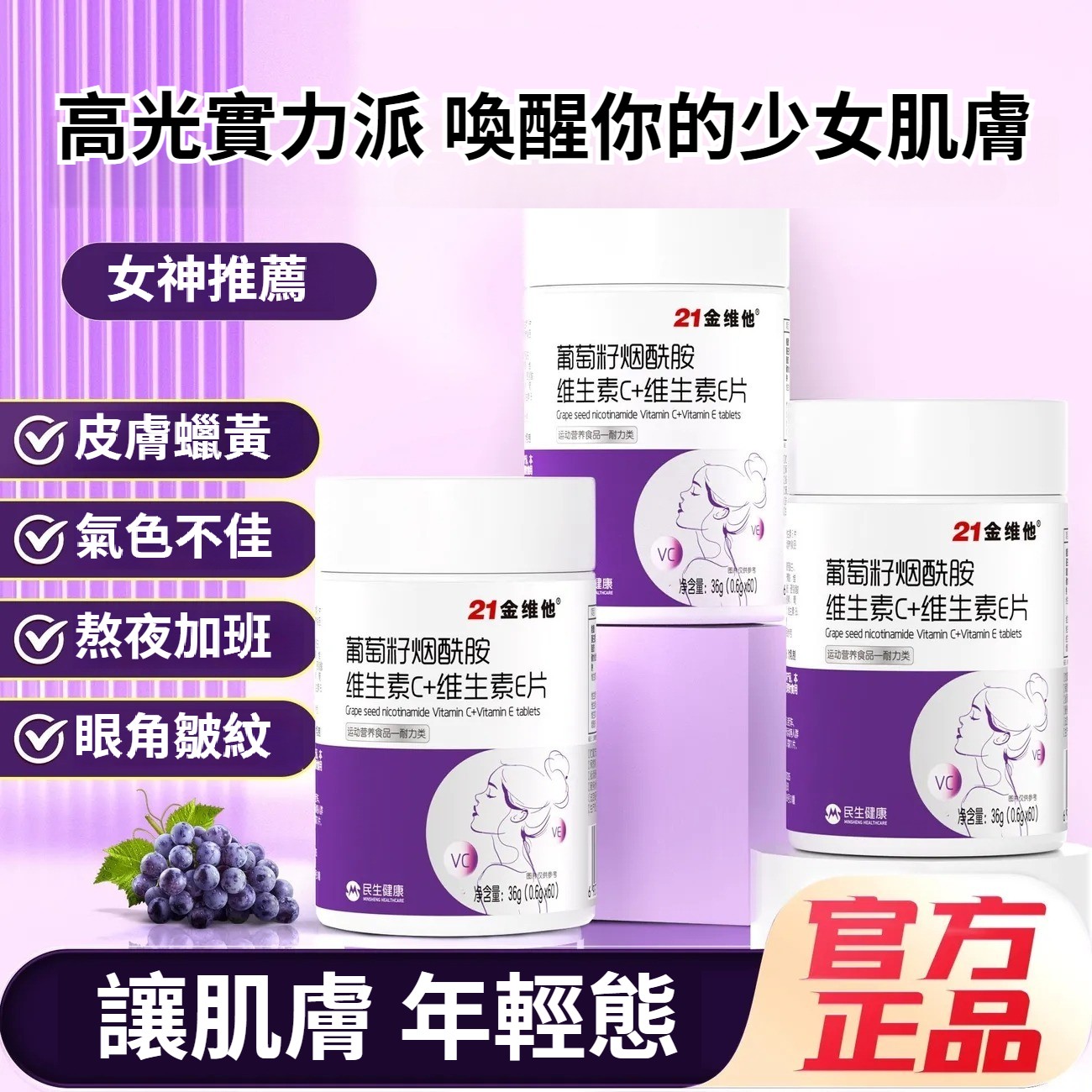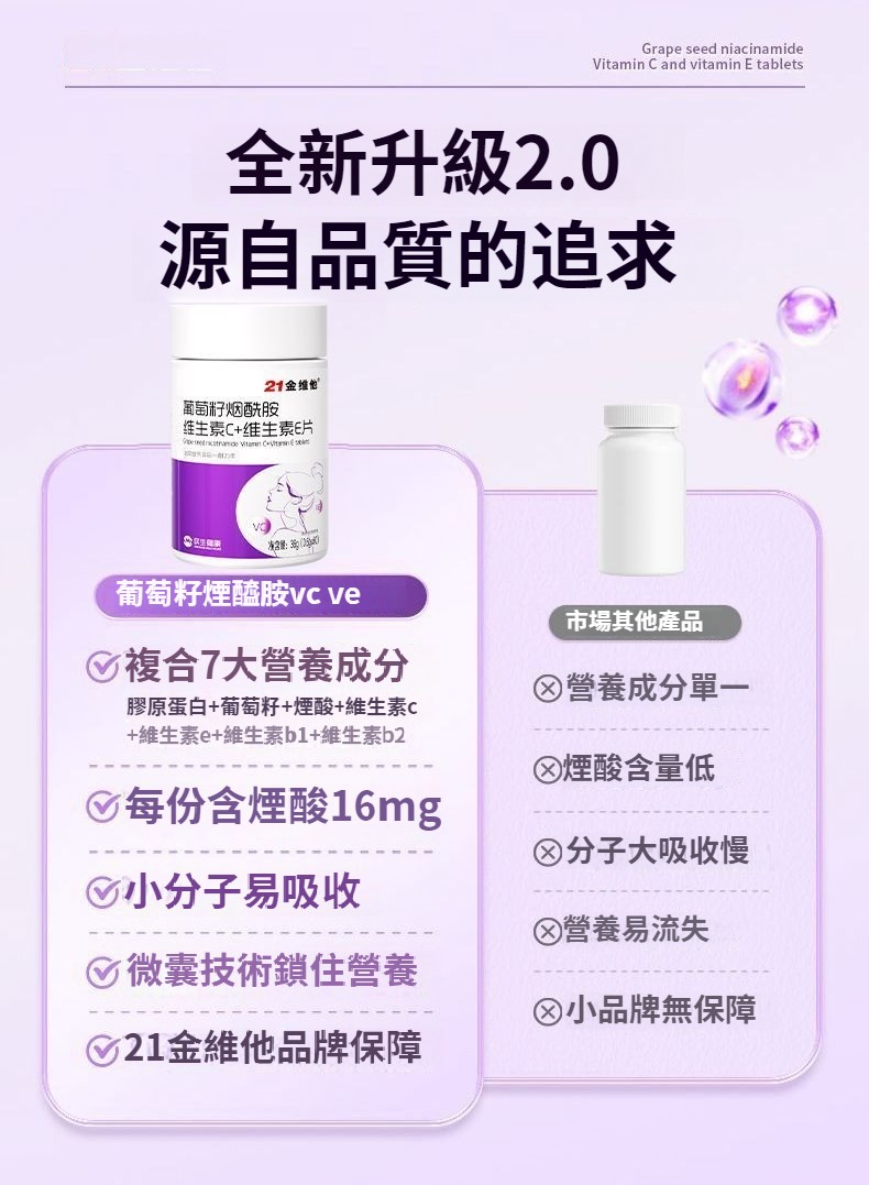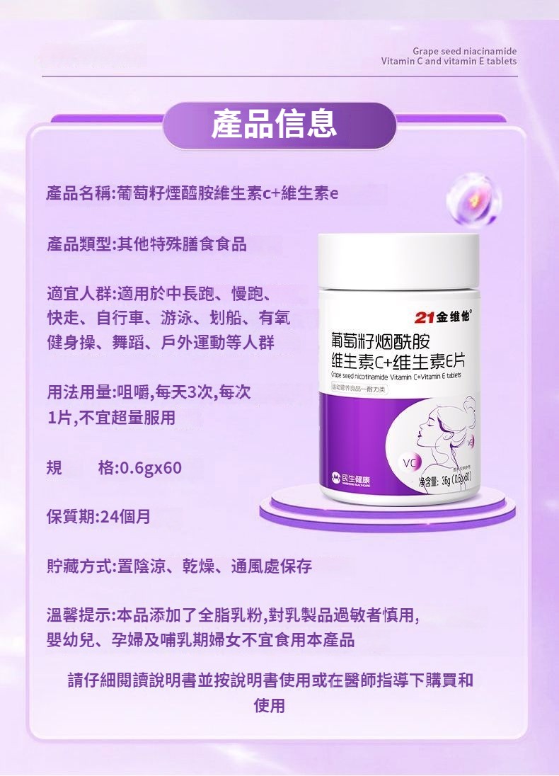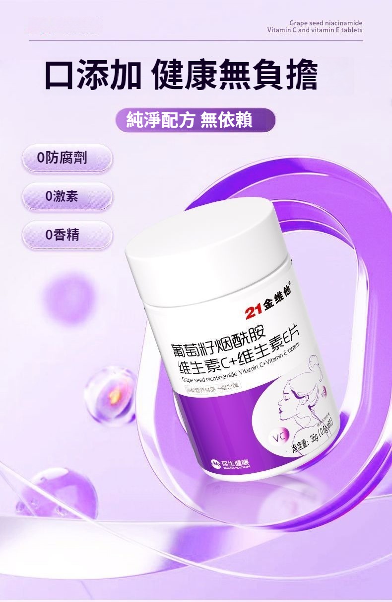 21金維他葡萄籽煙酰胺維生素C+E,60粒多種vcb煙酸非淡斑美白耐力類
