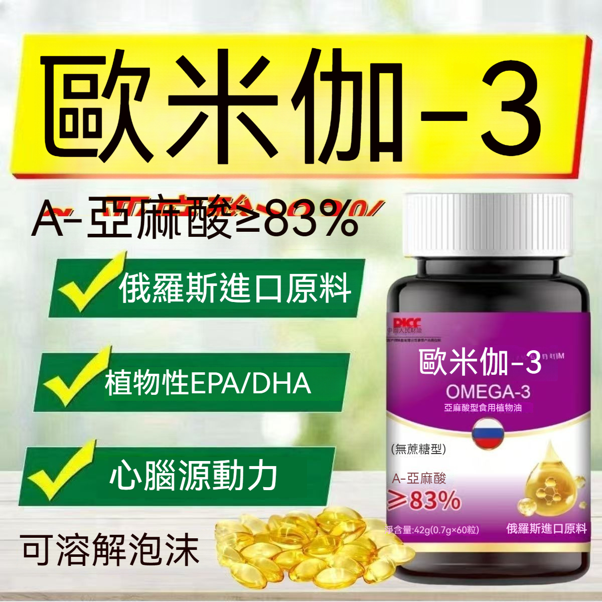 比魚油強80倍!通血管,護心腦,一粒抵十粒DHA!【歐米伽-3】高濃度α-亞麻酸,心腦植物黃金,守護中老年心腦健康,調節血脂,降三高,每天2粒,頭不暈,眼不花! NT$ 799