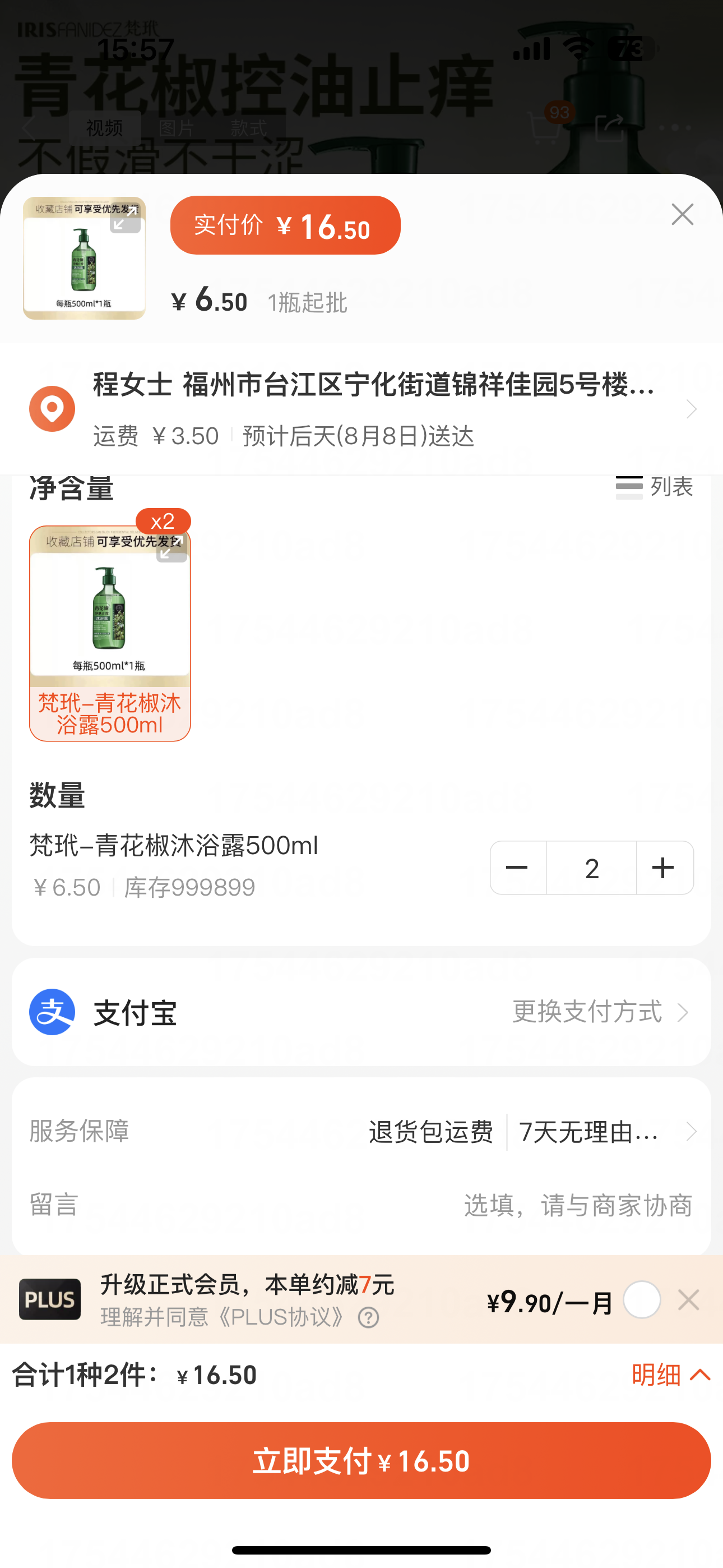 青花椒淨膚沐浴露2瓶
