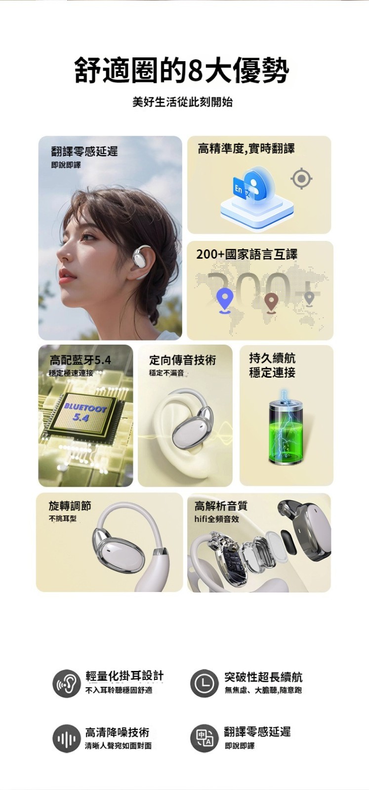 第 1 件 : 新款V18翻譯耳機5.4藍牙翻譯機掛耳式無線藍牙耳機多國語言